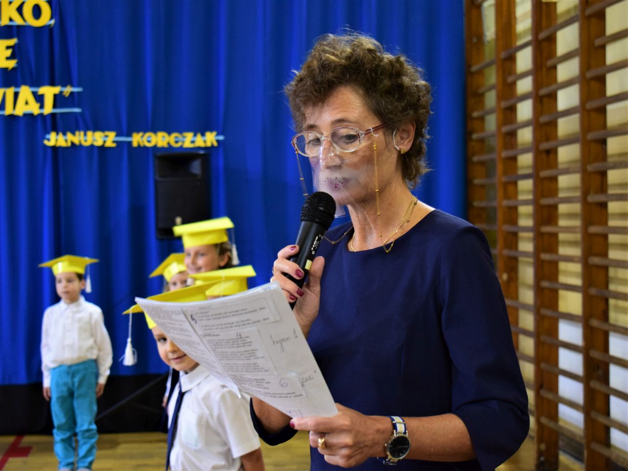 – Gdyby nie COVID, to bylibyśmy tu wszyscy razem. Przygotowania do ceremonii sprawiają, że pierwszoklasiści czują brać uczniowską, że integrują się nie tylko w swoim gronie, ale też w grupie swoich kolegów z sąsiedniej klasy. A tu wirus utrudnił nam życie – mówi Violetta Hanik, wychowawczyni klasy I b.