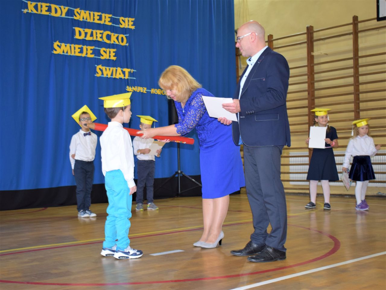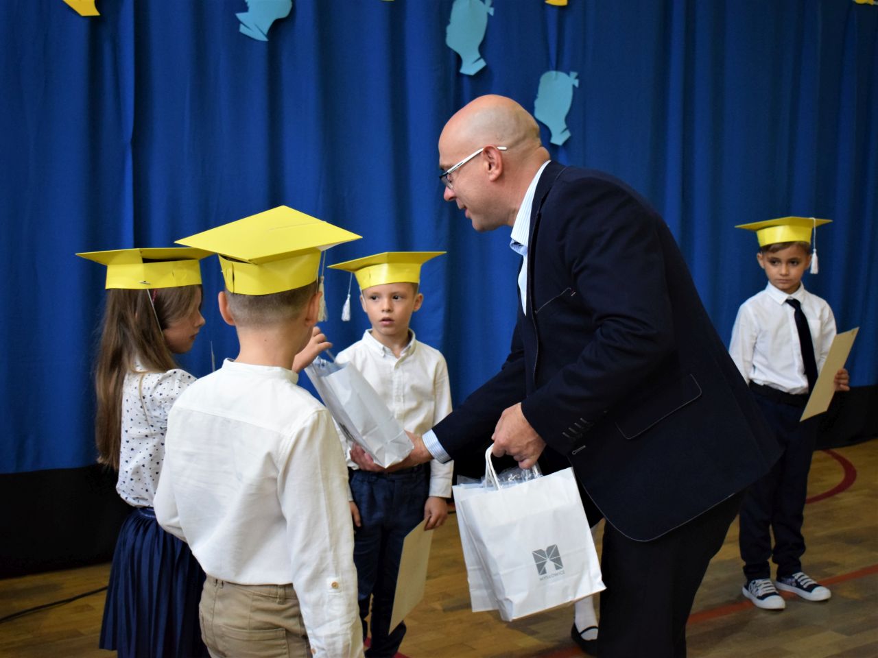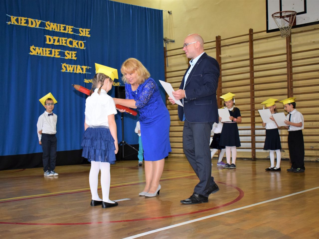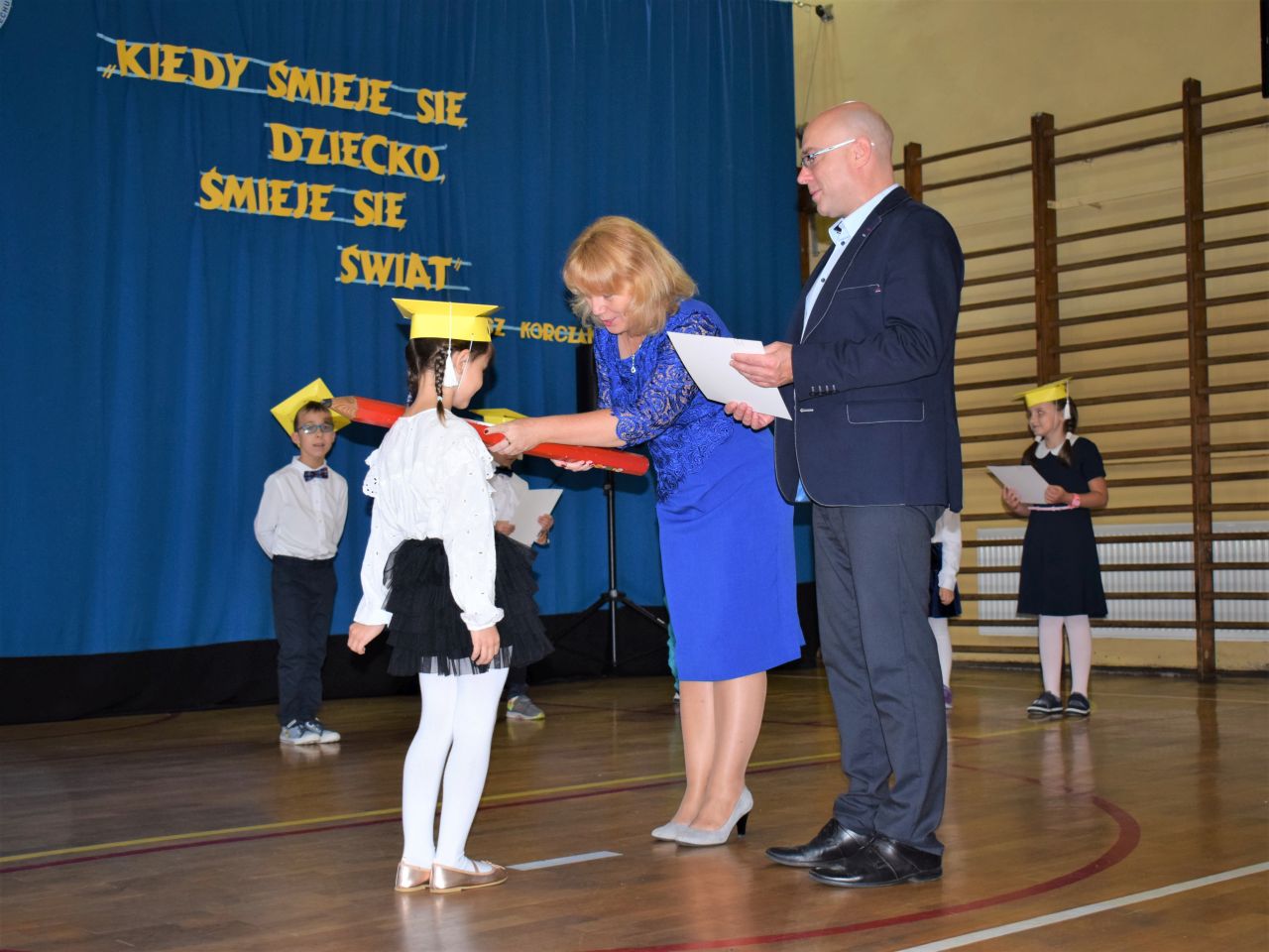 Zanim najmłodsi zostali przyjęci do grona społeczności szkolnej, zaprezentowali krótki program artystyczny, który zawierał zarówno wierszyki, jak i piosenki. Jednak najważniejszym momentem było ślubowanie, które wzbudziło wiele emocji. Aktu pasowania przy pomocy ogromnego ołówka dokonała dyrektor Barbara Zawiślak, a dyplomy wraz z pierwszymi szkolnymi legitymacjami wręczył prezydent Dariusz Wójtowicz.