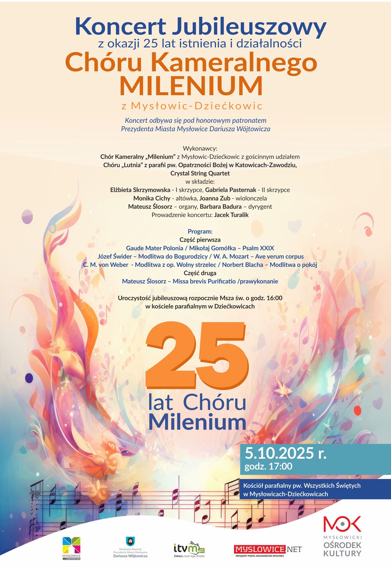 W niedzielę 5 października w kościele pw. Wszystkich Świętych w Mysłowicach-Dziećkowicach odbędzie się Koncert Jubileuszowy z okazji 25-lecia Chóru Kameralnego Milenium.