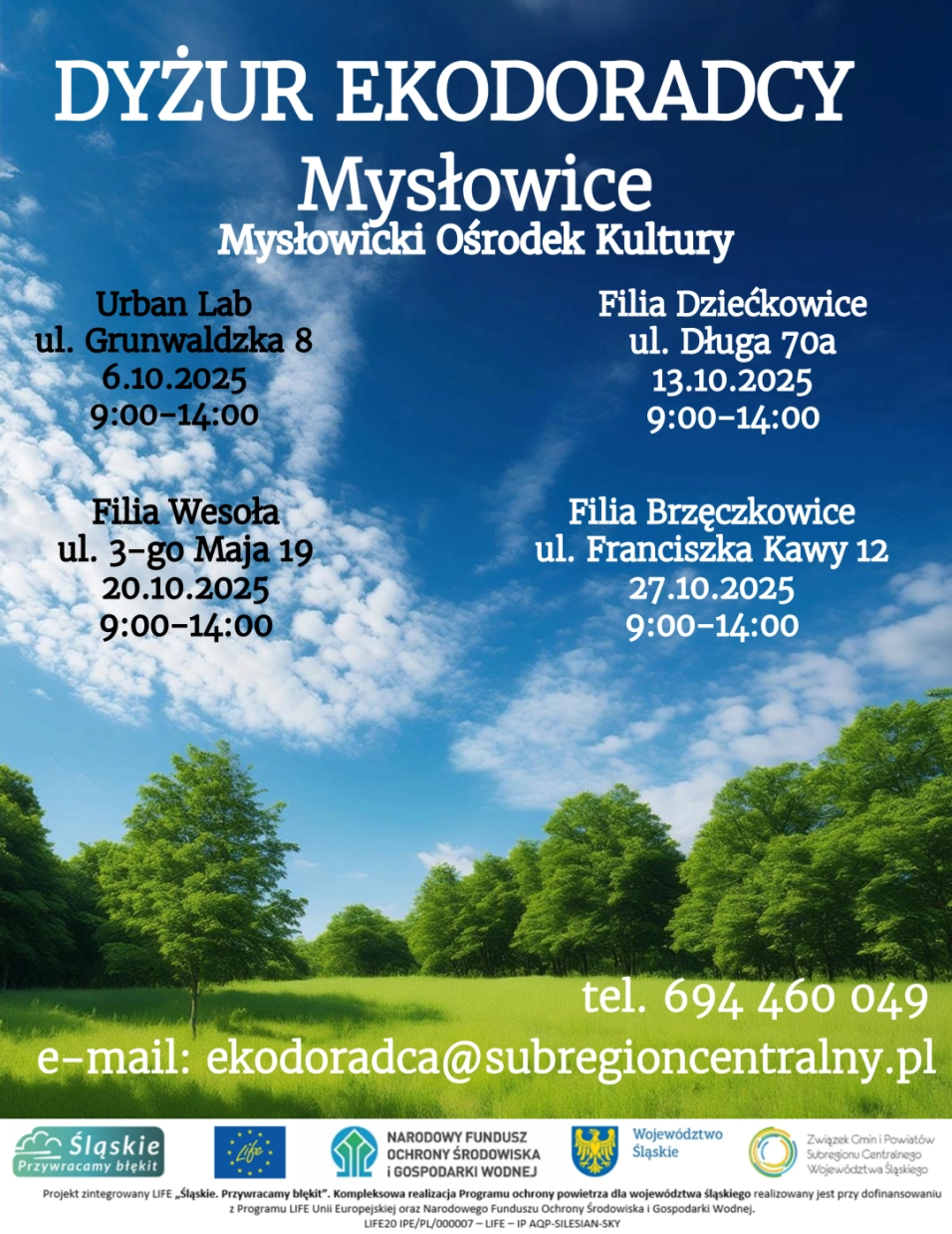 Bezpłatne konsultacje z ekodoradcą czekają na mieszkańców Mysłowic. Podczas spotkania będzie można uzyskać informacje o programach dofinansowań do wymiany źródeł ciepła, termomodernizacji czy instalacji fotowoltaiki, a także skorzystać z pomocy przy wypełnianiu wniosków i dowiedzieć się więcej o uchwale antysmogowej.