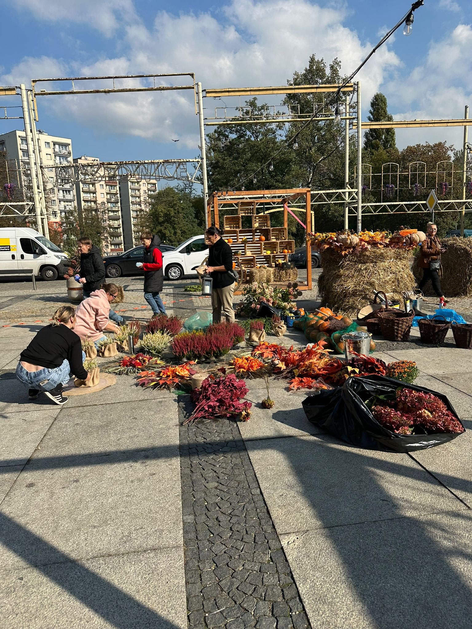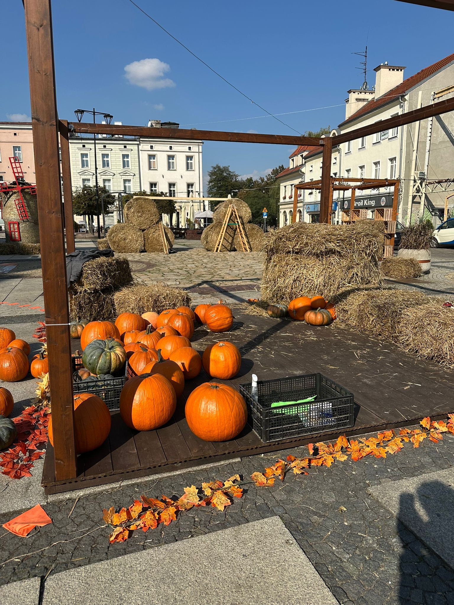Ostatnia prosta w przygotowaniach jesiennych dekoracji na Rynku Mysłowickim – już za chwilę przestrzeń zmieni się nie do poznania.