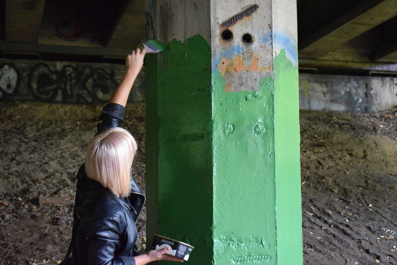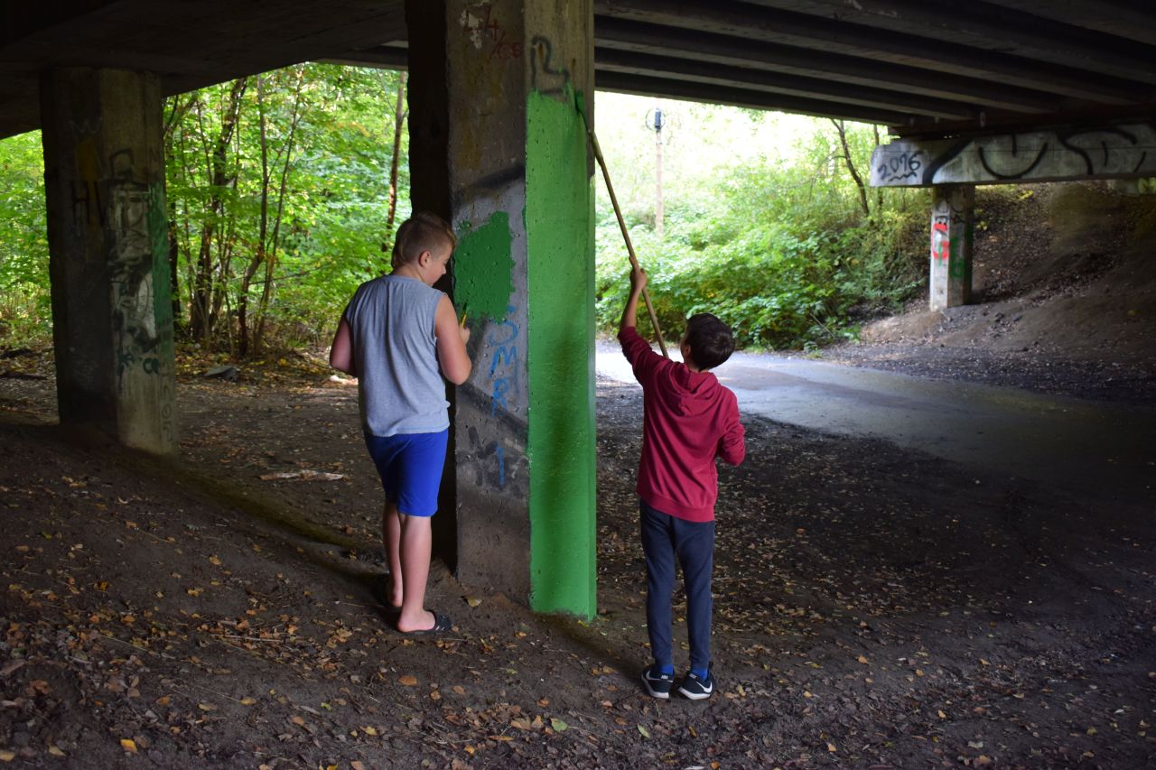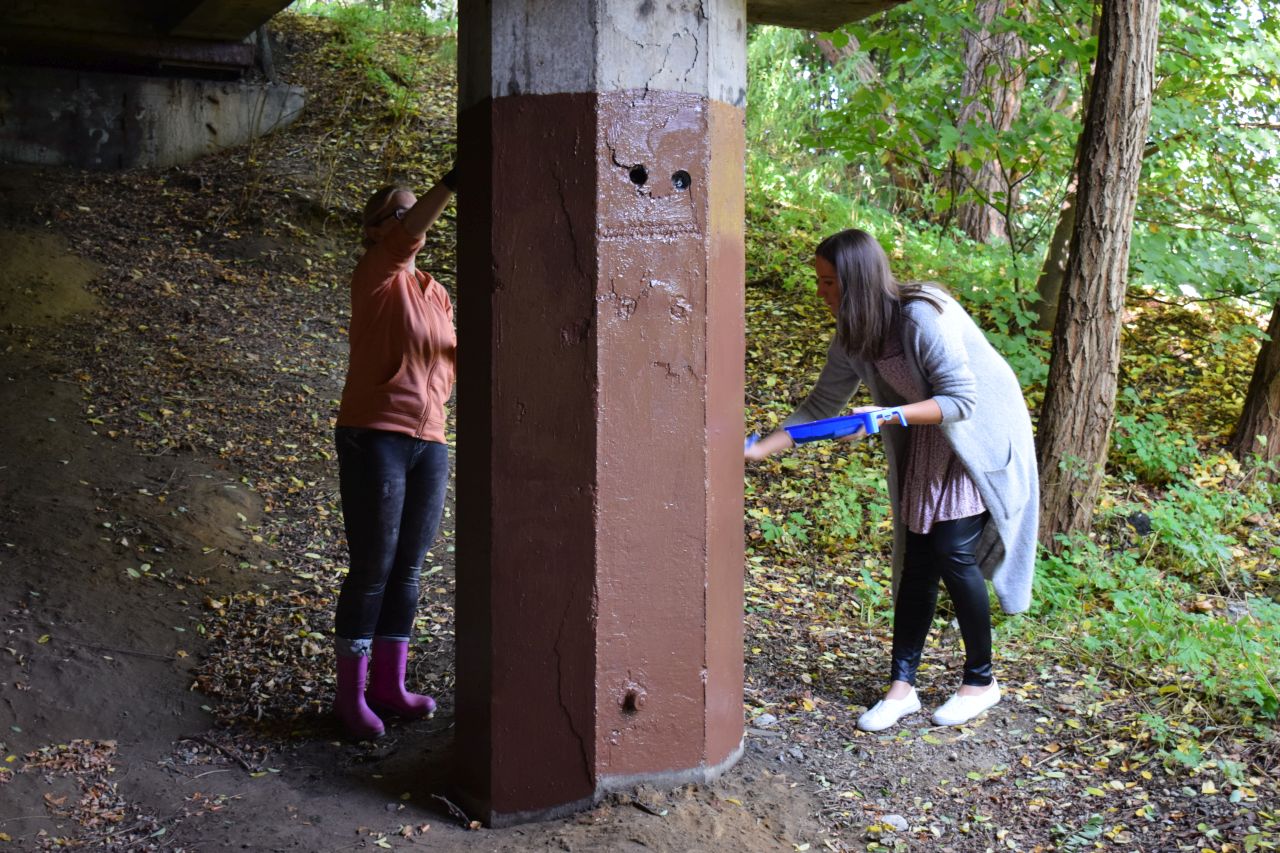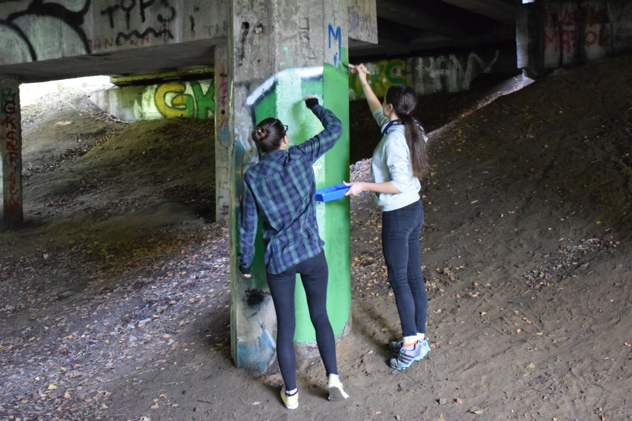 Panie zaprosiły więc chętnych do pomocy mieszkańców dzielnicy, kupiły farby i w sobotę 3 października zabrały się do roboty. Część materiałów pochodziła także od sponsora, firmy Stobud. Przy okazji społecznicy posprzątali las w okolicy wiaduktu.