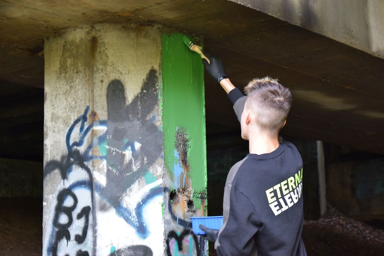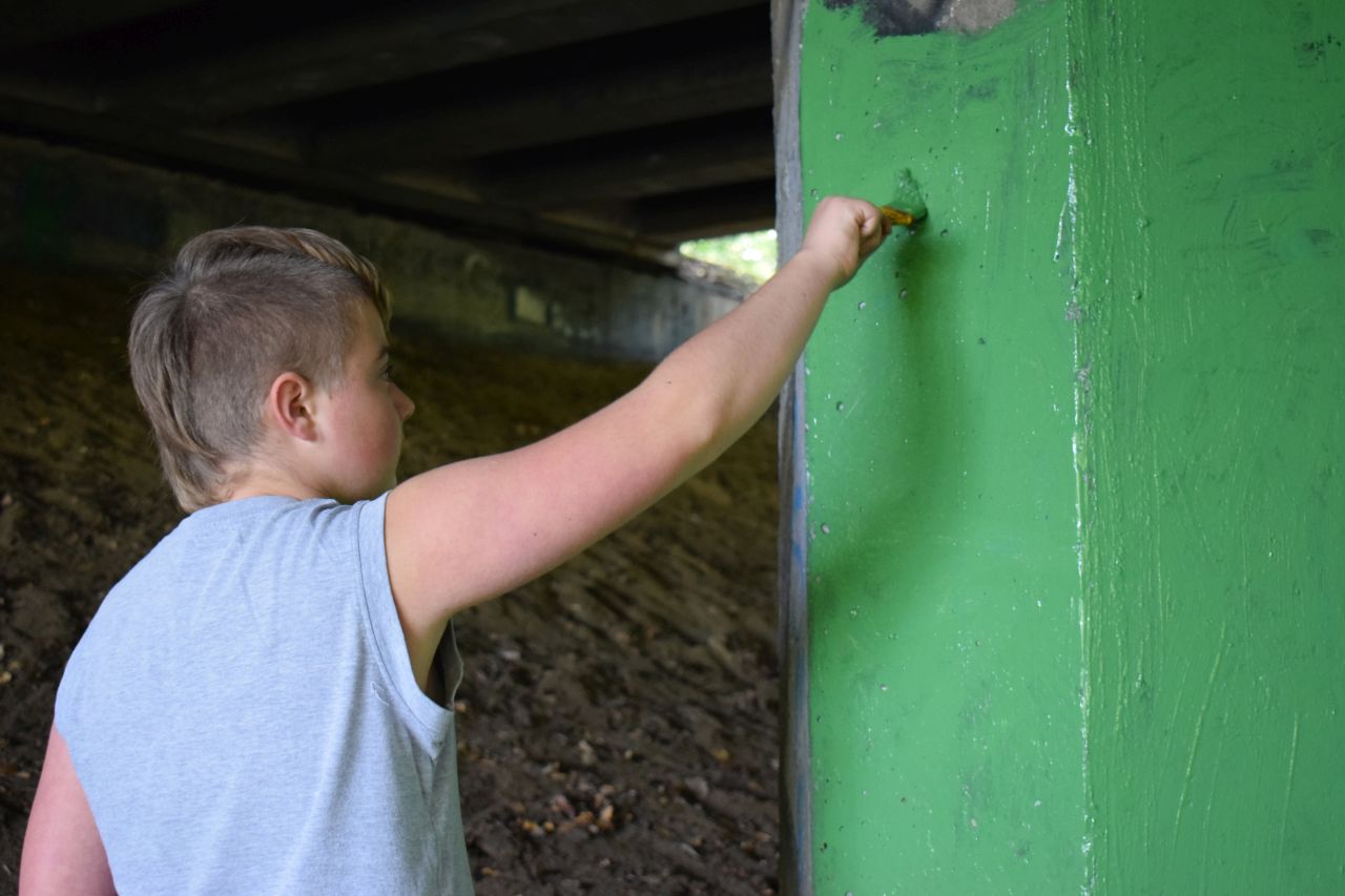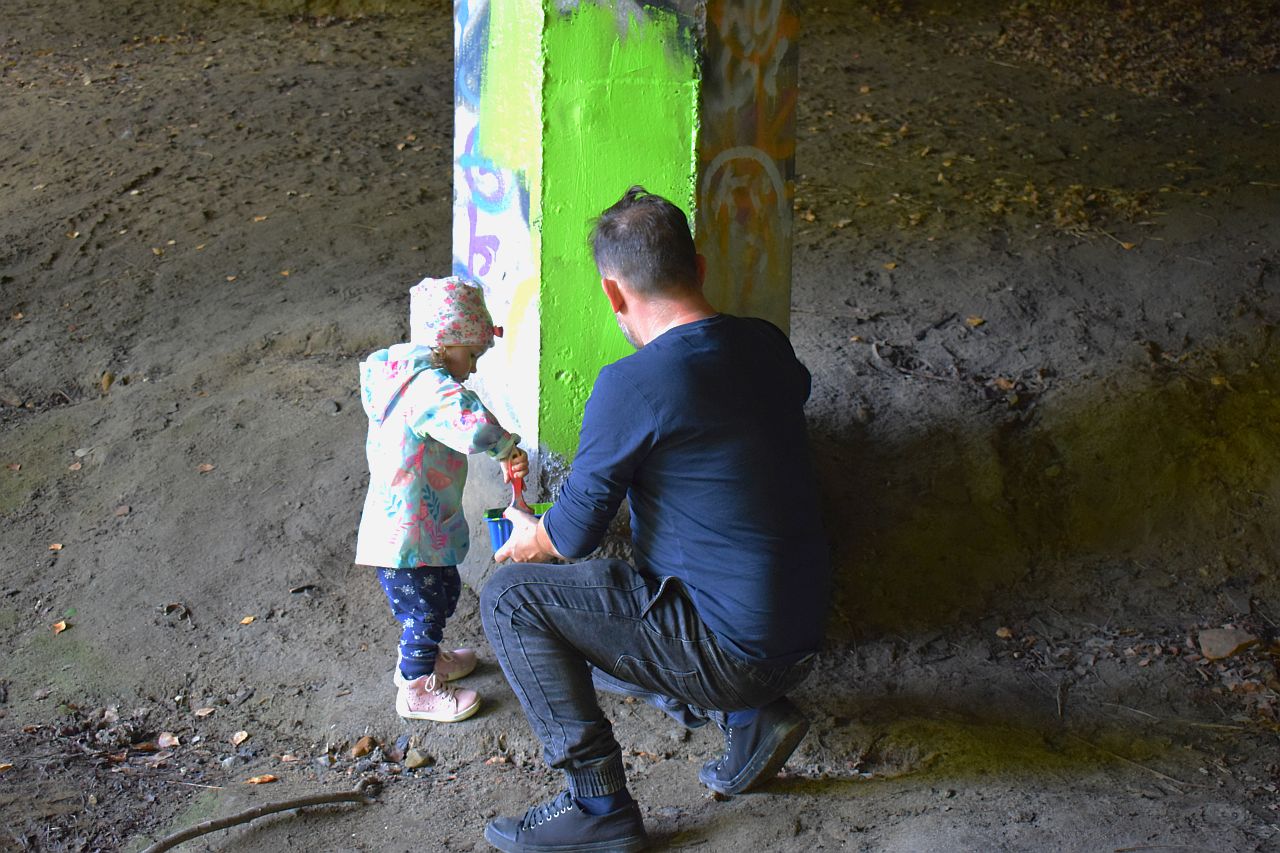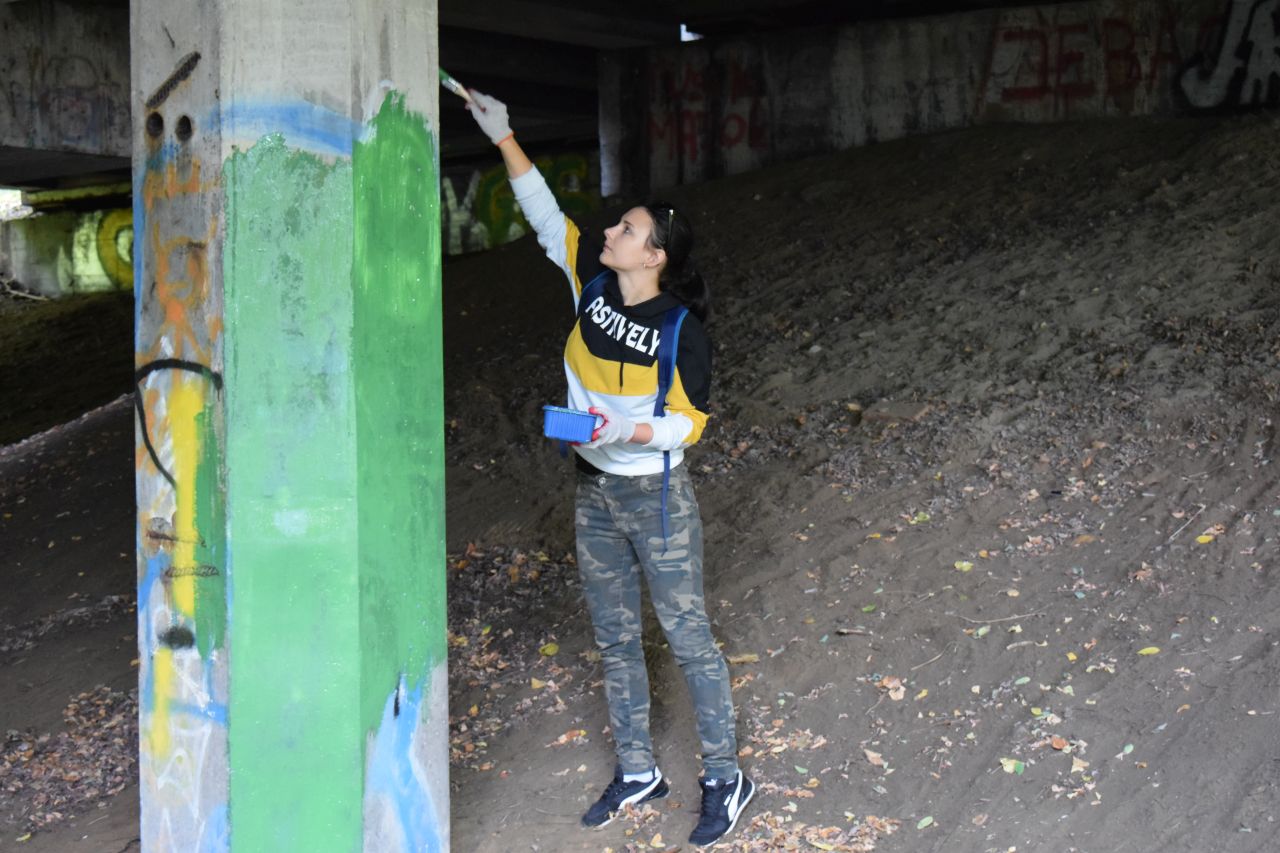 Panie zaprosiły więc chętnych do pomocy mieszkańców dzielnicy, kupiły farby i w sobotę 3 października zabrały się do roboty. Część materiałów pochodziła także od sponsora, firmy Stobud. Przy okazji społecznicy posprzątali las w okolicy wiaduktu.