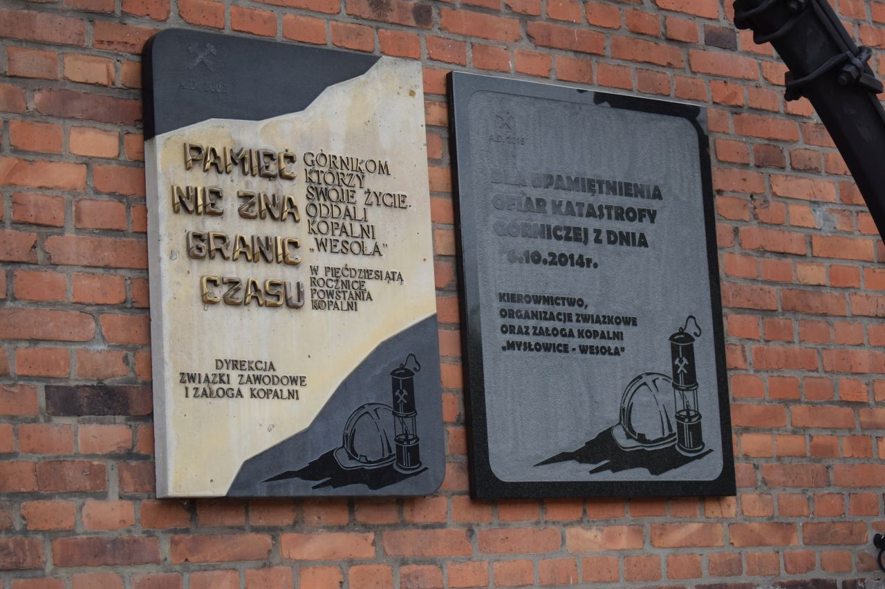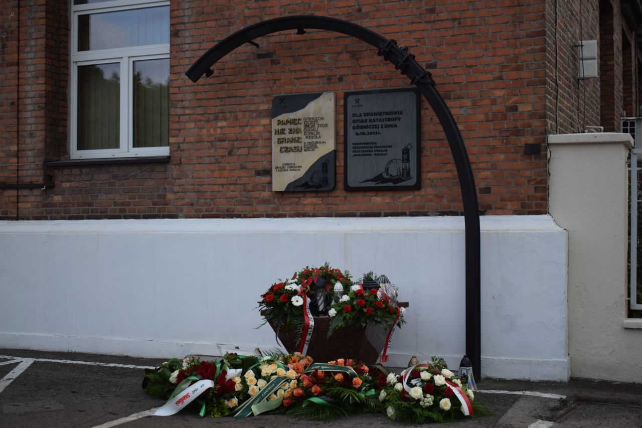 Rok po tragedii na budynku dyrekcji kopalni zawisła tablica upamiętniająca zmarłych górników. Od tej pory w każdą rocznicę składane są tu kwiaty i zapalane znicze. W dzisiejszych uroczystościach wzięli udział m.in. przedstawiciele władz kopalni i związków zawodowych, poseł Wojciech Król, prezydent Mysłowic Dariusz Wójtowicz i jego zastępcy Wojciech Chmiel i Mateusz Targoś czy mysłowiccy radni.