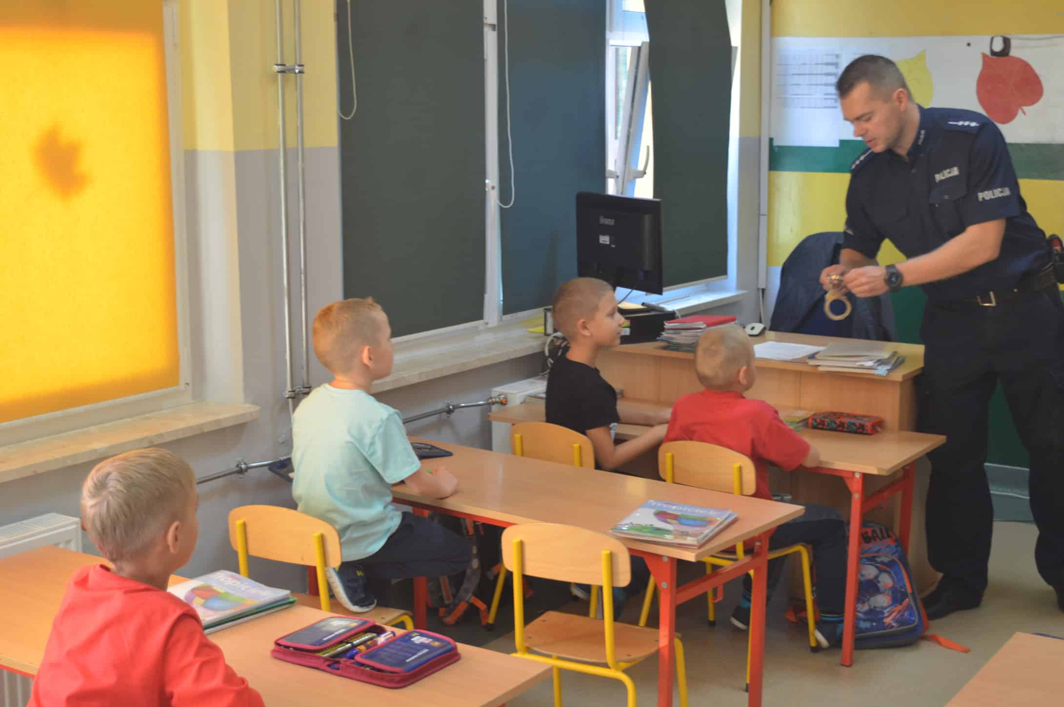 Dzieci wykazały się dużą wiedzą w tym zakresie i chętnie zgłaszały się do odpowiedzi. W nagrodę policjant pokazał dzieciom kajdanki i odpowiedział na dodatkowe pytania nurtujące młodych uczestników ruchu drogowego.