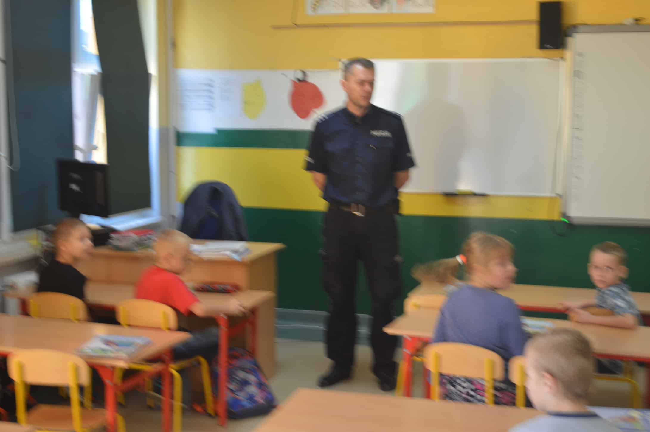 W ubiegłym tygodniu do pierwszaków z „Dziesiątki” zawitali niespodziewani goście. Sympatyczny pan policjant opowiedział dzieciom o zasadach bezpieczeństwa podczas przechodzenia przez jezdnię oraz o czym należy pamiętać podczas drogi do i ze szkoły.