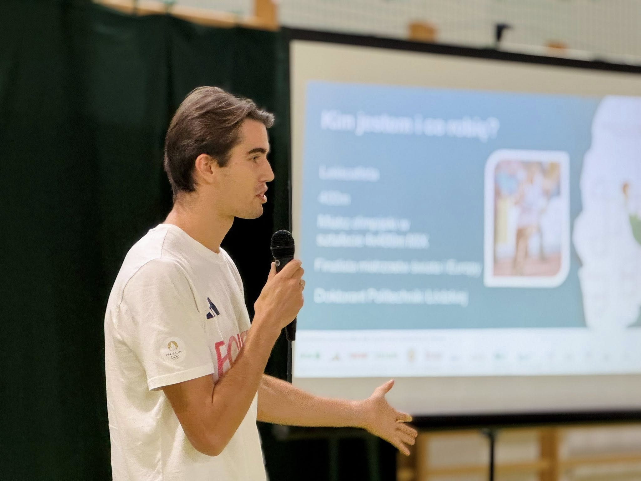 – W TEJ SZKOLE WIDZĘ, ŻE DZIECI DOBRZE ROZUMIEJĄ SPORT. ROZMAWIAŁEM Z NAUCZYCIELAMI. SĄ ONE BARDZO ZAANGAŻOWANE OD POCZĄTKU. […] WIEM TO Z AUTOPSY I WIEM, ŻE JAK MIAŁEM SAM SPOTKANIE W JAKICHŚ SZKOŁACH, CZY JAKO DZIECKO, TO BARDZO DOBRZE JE PAMIĘTAM – MÓWI KAJETAN DUSZYŃSKI, MISTRZ OLIMPIJSKI Z PARYŻA W SZTAFECIE MIESZANEJ 4X400 M.