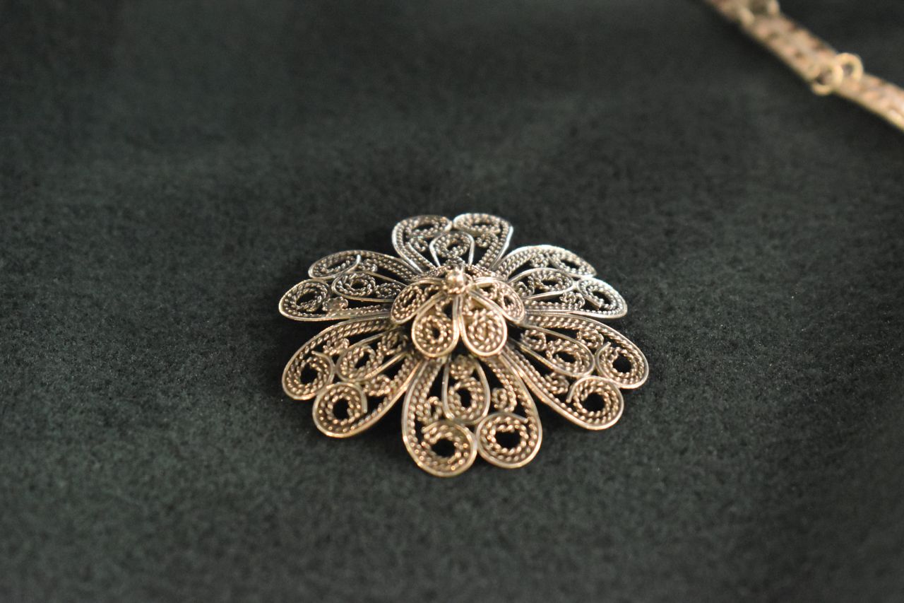 – To właśnie są takie bardzo delikatne sploty srebrnych drucików, z których później powstają różne motywy, czy to kwiatowe, liście. I to jest właśnie taka bardzo delikatna biżuteria – dodaje kolekcjonerka.
