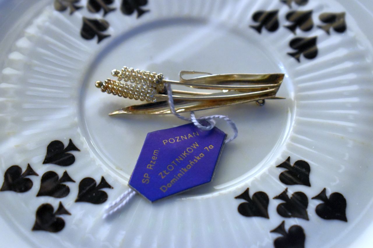 – Faktycznie w latach 50. był ogromny problem z kruszcem. Od 1950 roku to w ogóle osoby, które zajmowały się indywidualnie złotnictwem, miały zakaz posiadania złota czy platyny. A od 1951 niestety nawet srebro i inne metale kolorowe były ściśle reglamentowane. Tak że ta biżuteria bardzo często jest właśnie zastępowana innym materiałem, typu mosiądz czy inne metale, bursztyn albo też imitacje bursztynów – podkreśla Izabela Geppert.
