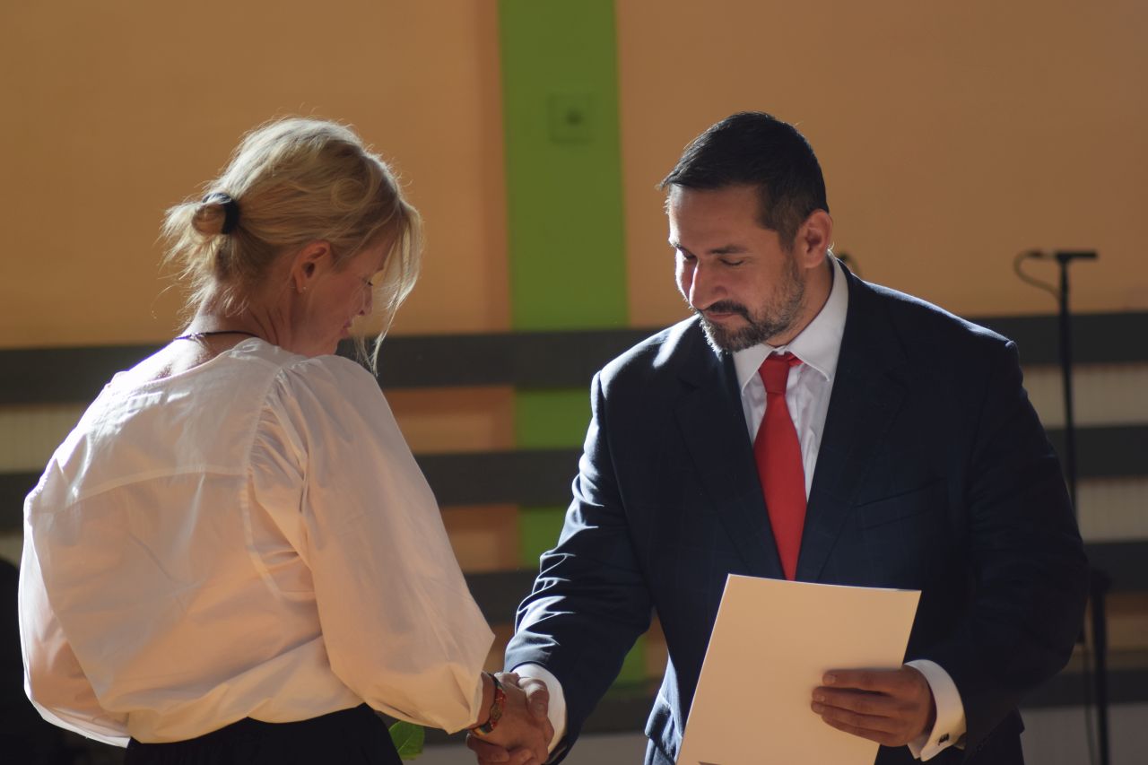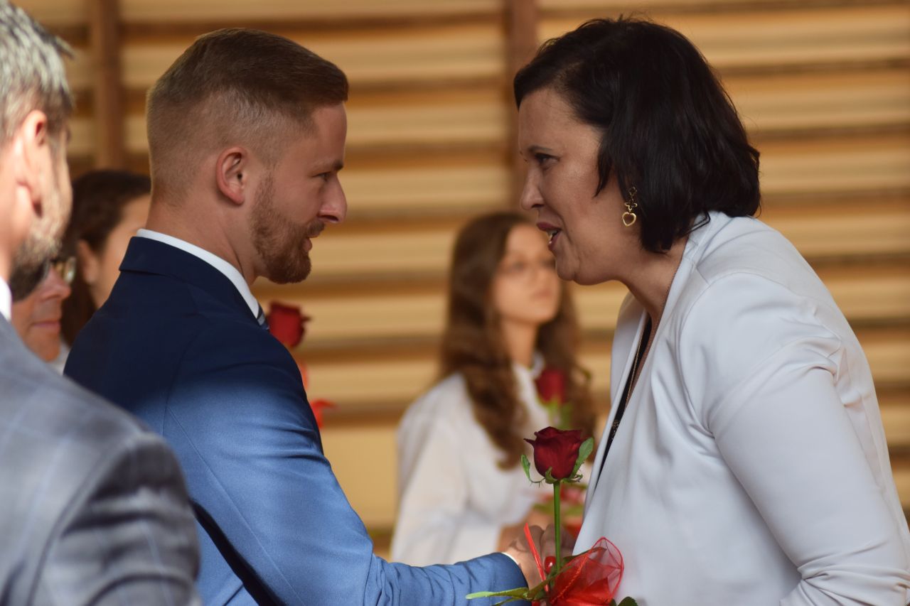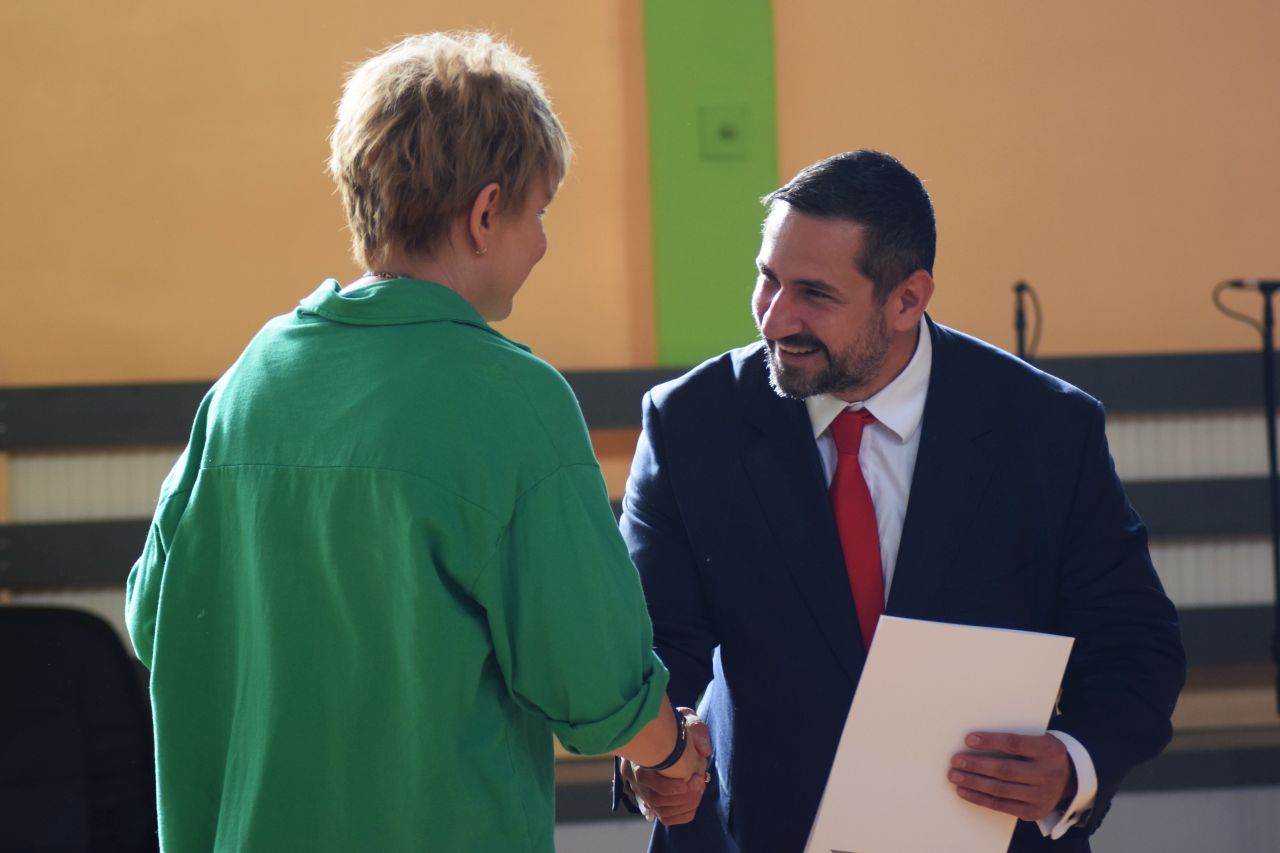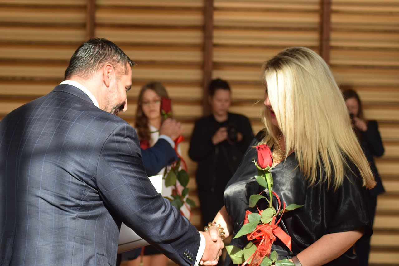 „Edukacja to relacja” – pod takim hasłem przebiegały dzisiejsze miejskie obchody Dnia Edukacji Narodowej. Gospodyni uroczystości Aneta Szczęsny, dyrektorka SP 15, podkreślała, że jakość edukacji naszych dzieci zależy w dużej mierze od jakości komunikacji pomiędzy nauczycielami, uczniami i ich rodzicami. Uczniowie „Piętnastki” przygotowali program artystyczny, który zaprezentowali przybyłym gościom. W takim dniu nie mogło też zabraknąć rozmów o kondycji oświaty w mieście. Temat ten poruszyli m.in. przedstawiciele Związku Nauczycielstwa Polskiego i resortowy wiceprezydent Mysłowic Mateusz Targoś. Na koniec wręczone zostały nagrody prezydenta dla nauczycieli. Otrzymali je: