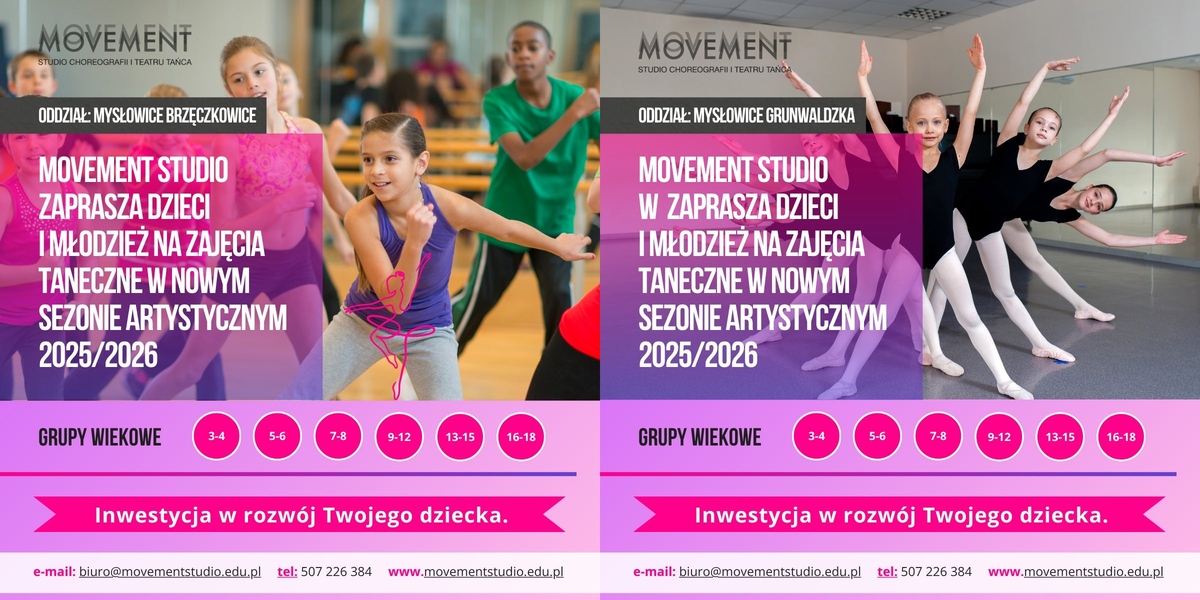 Taniec i dobra zabawa czekają na młodych tancerzy w Mysłowicach! Movement Studio zaprasza dzieci i młodzież na zajęcia prowadzone w dwóch lokalizacjach.
