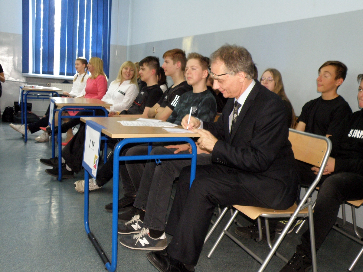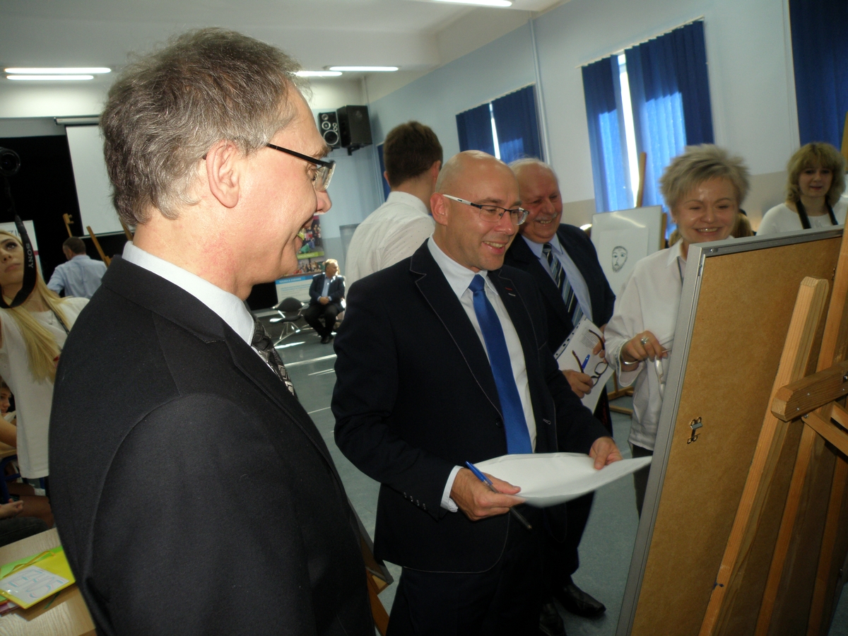 Prezydent Wójtowicz chętnie odwiedził placówkę, bo, jak wspomniał, sam był kiedyś uczniem szkoły „na Górce” i dobrze ten czas wspomina. Jako prezydent, ale też jako absolwent placówki otrzymał od uczniów niecodzienny prezent: skonstruowanego z części samochodowych rycerza.