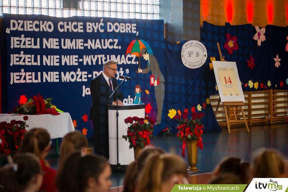 Gospodarzem miejskich uroczystości była Szkoła Podstawowa nr 16 z Oddziałami Dwujęzycznymi im. Jerzego Chromika. Uroczystość poprowadziła naczelnik wydziału edukacji mysłowickiego magistratu Aleksandra Żołna.