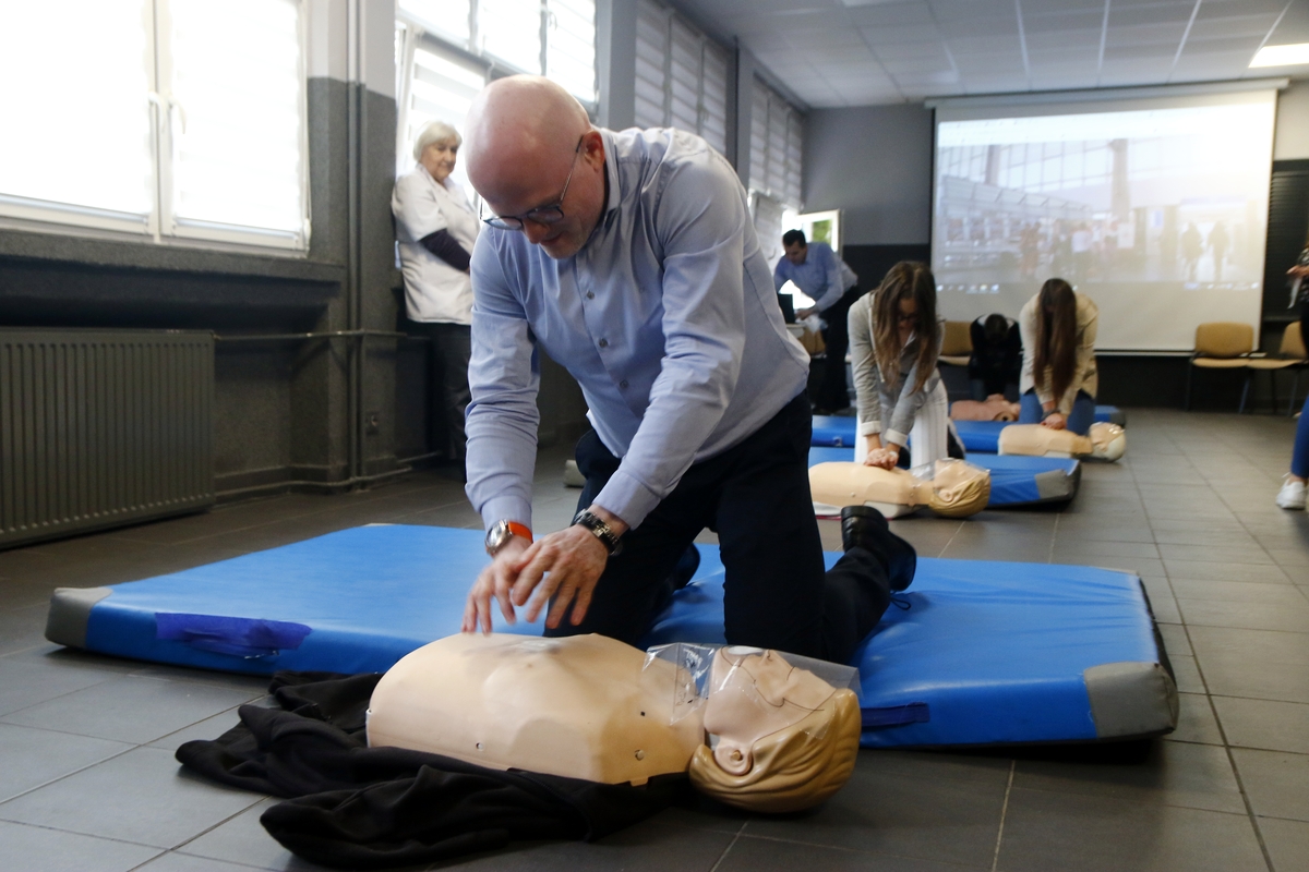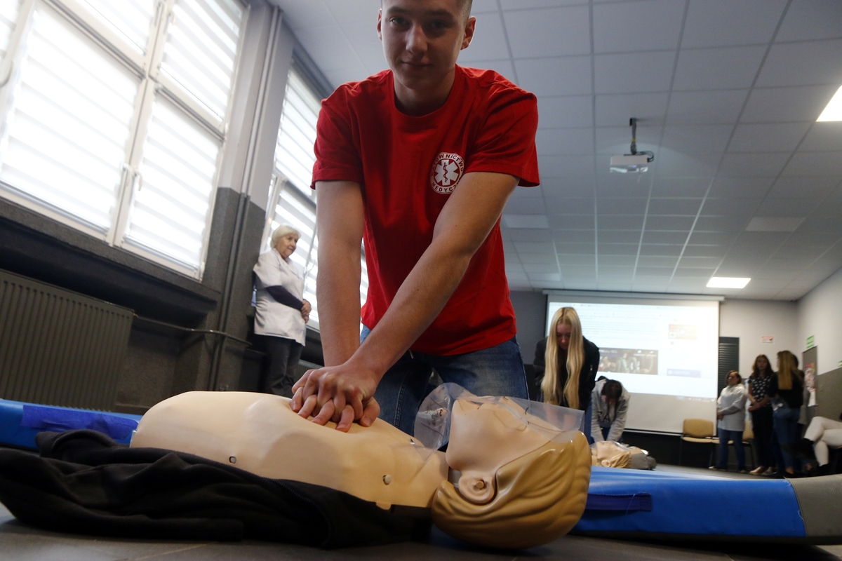– Oczywiście musieliśmy odpowiednio wcześniej zgłosić naszą placówkę do udziału w tym biciu rekordu. U nas w szkole czynny udział biorą trzydzieści dwie osoby. Mamy cztery manekiny i właściwie tylko to nas ogranicza na chwilę obecną – mówi Łukasz Pękala, koordynator akcji i nauczyciel edukacji dla bezpieczeństwa i wychowania fizycznego w Centrum Kształcenia Zawodowego i Ustawicznego w Mysłowicach.