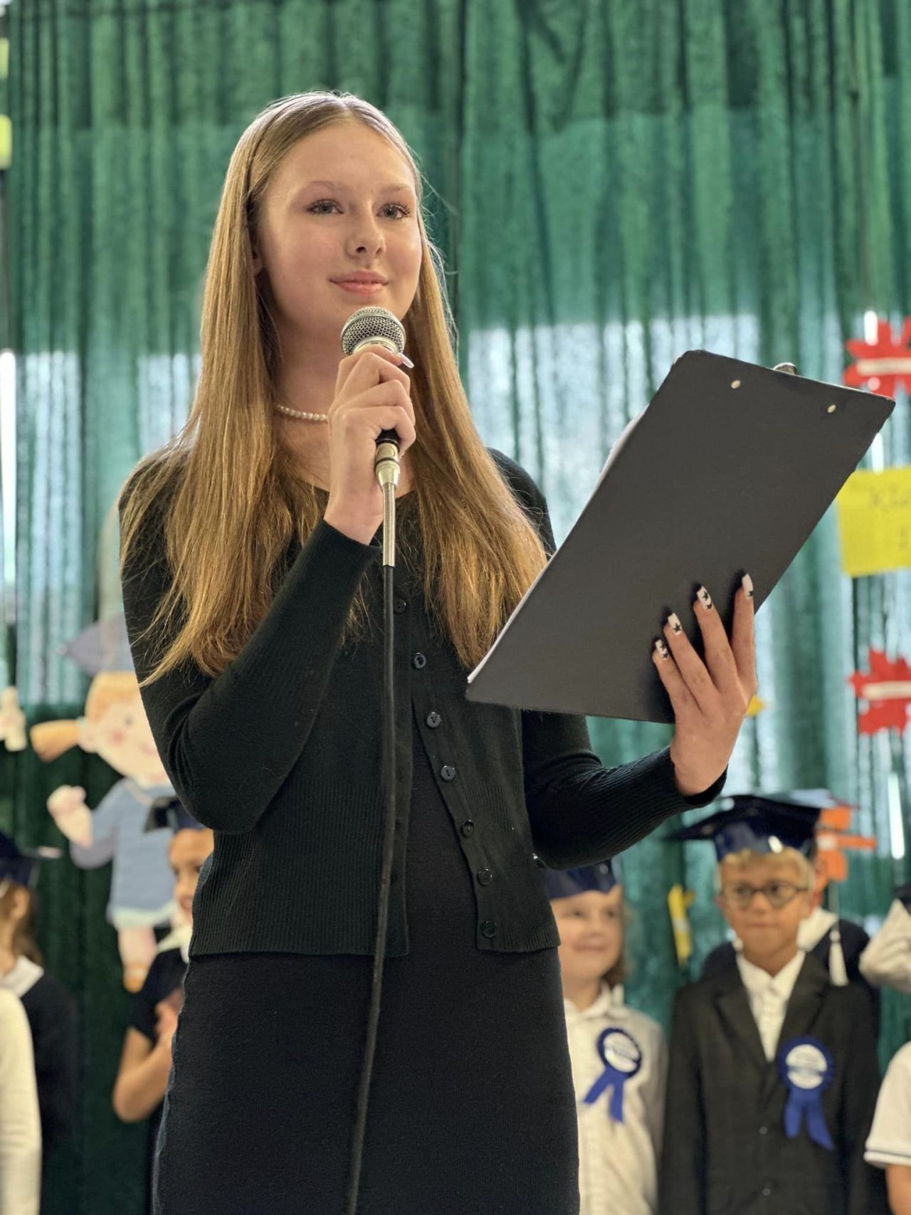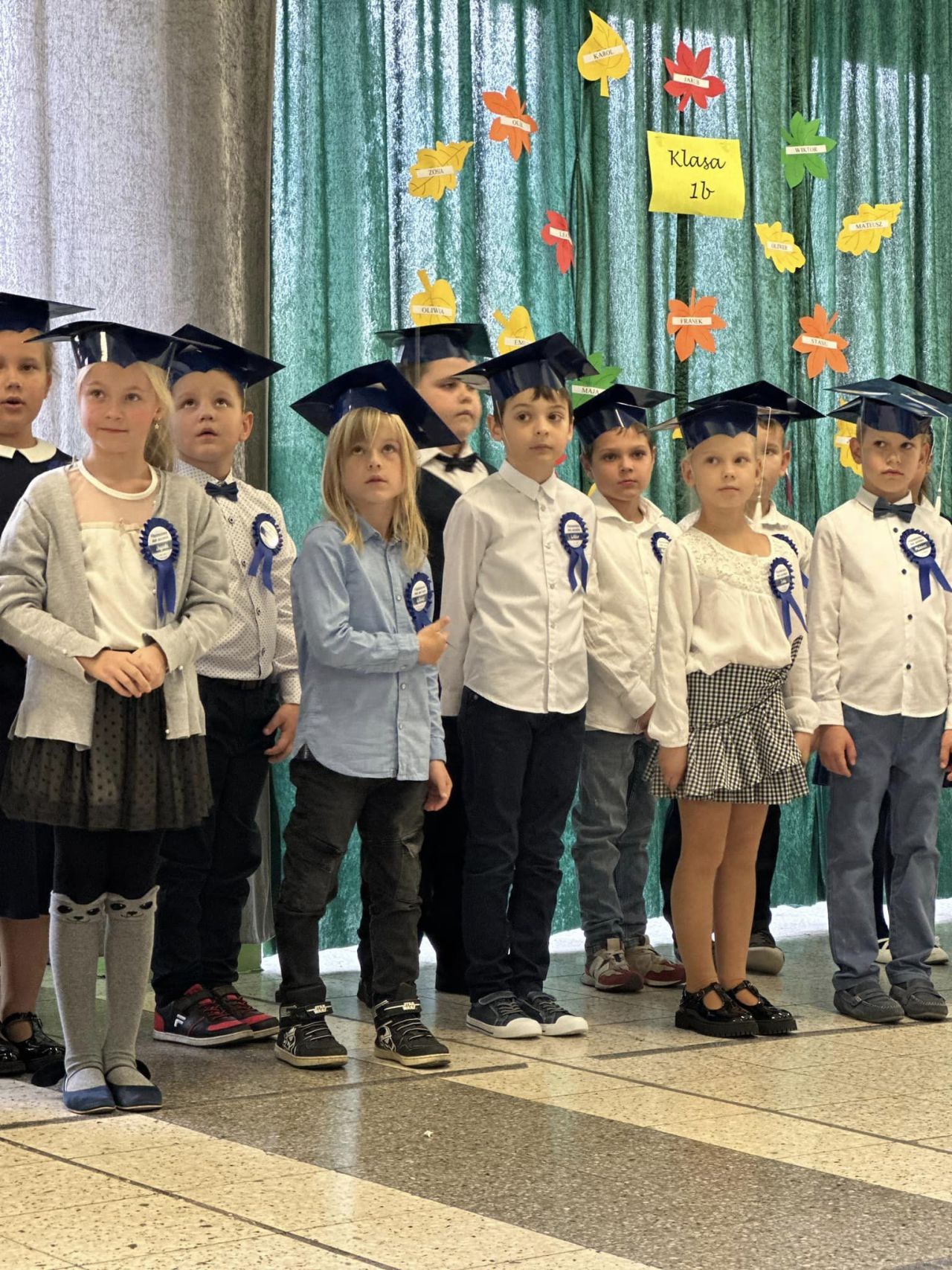 Dzieci z klasy 1a, 1b i 1c musiały wykazać się umiejętnością śpiewania, recytowania, a nawet znajomością znaków drogowych i historii Ojczyzny. Wszyscy wspaniale zdali swój pierwszy szkolny „egzamin”, świetnie recytując z podziałem na role oraz wykonując piosenki: „Jesteśmy Polką i Polakiem”, „Znaki drogowe”, „Na dobry początek” i „Pierwszaczek” – śpiewane po mistrzowsku. Pierwszoklasiści zdali na szóstkę! Występ został przygotowany pod kierunkiem pani dyrektor Karoliny Kozioł-Mospinek przez wychowawców: klasy 1a – Grażyny Charkiewicz, klasy 1b – Magdaleny Filak, klasy 1c – Iwony Jochemczyk oraz dzięki pomocy zdolnych uczniów klas siódmych.