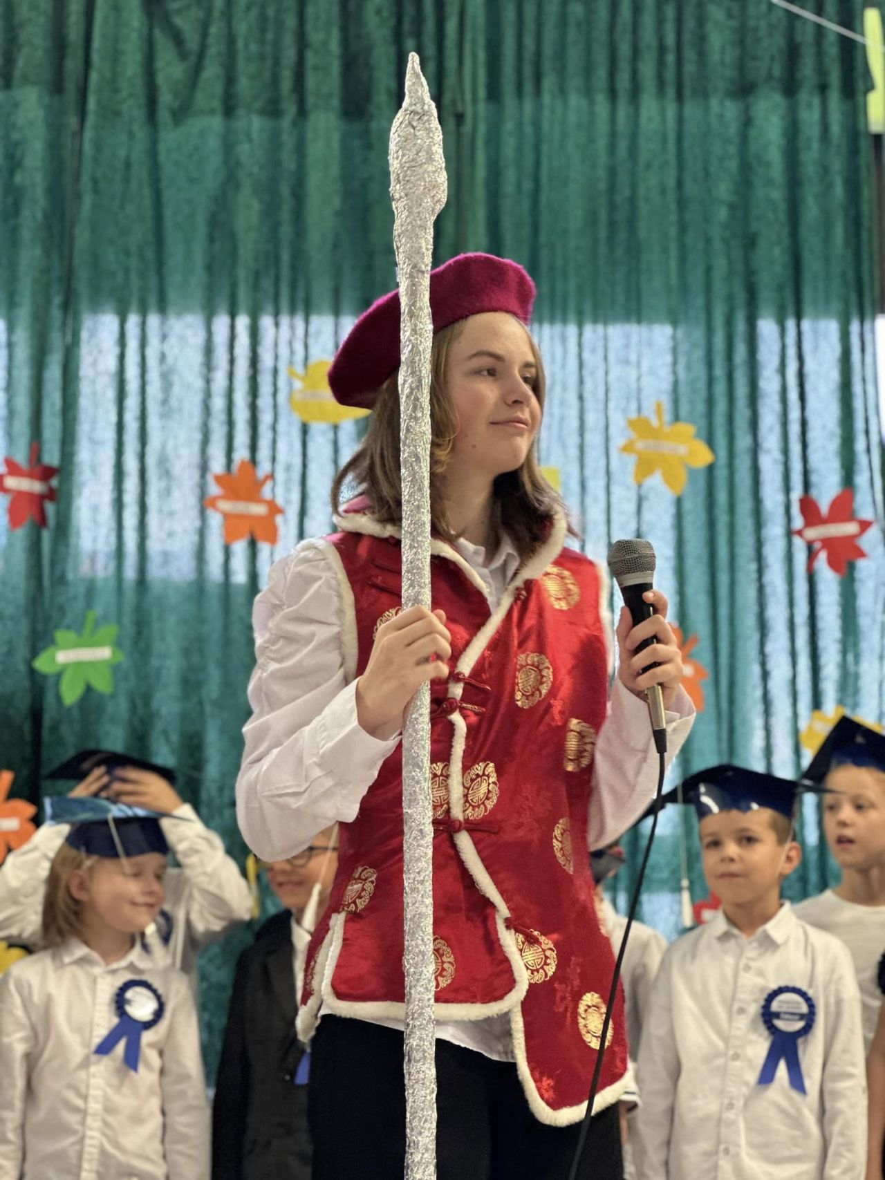 17 października 2023 r. o godz. 16:00 w gmachu Szkoły Podstawowej nr 4 z Oddziałami Dwujęzycznymi im. Wojciecha Korfantego w Mysłowicach można było usłyszeć te słowa z ust wszystkich pierwszoklasistów. Uczniowie, chodząc już prawie dwa miesiące do szkoły, zdążyli nabyć pierwsze, ważne umiejętności i byli już gotowi, by zostać pełnoprawnymi uczniami klasy pierwszej i częścią całej szkolnej społeczności. Najpierw jednak czekał ich mały „sprawdzian”, który przygotował dla nich sam król Ołówkos wraz ze swoją małżonką królową Ołówkową z pomocą dzielnych gwardzistów, którzy specjalnie na ten dzień przybyli z tajemniczego królestwa Szkolandii.