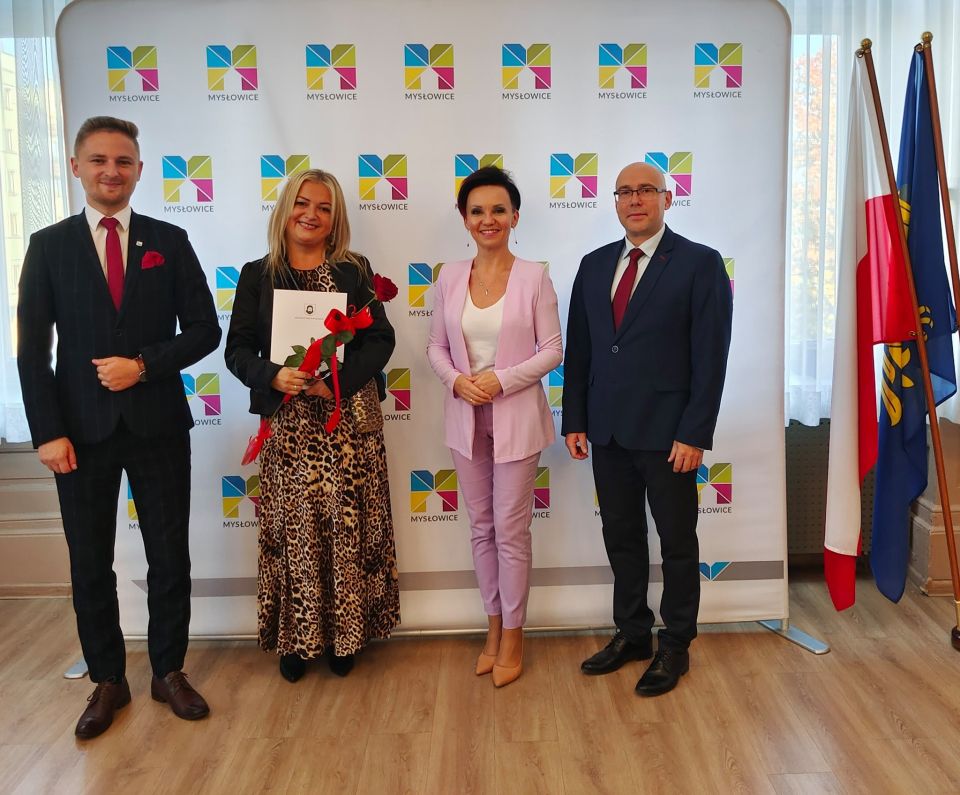 Laury pedagogom wręczali prezydenci Mysłowic Dariusz Wójtowicz, Wojciech Chmiel i Mateusz Targoś oraz naczelniczka Wydziału Edukacji Urzędu Miasta Mysłowice Anita Kukułka.