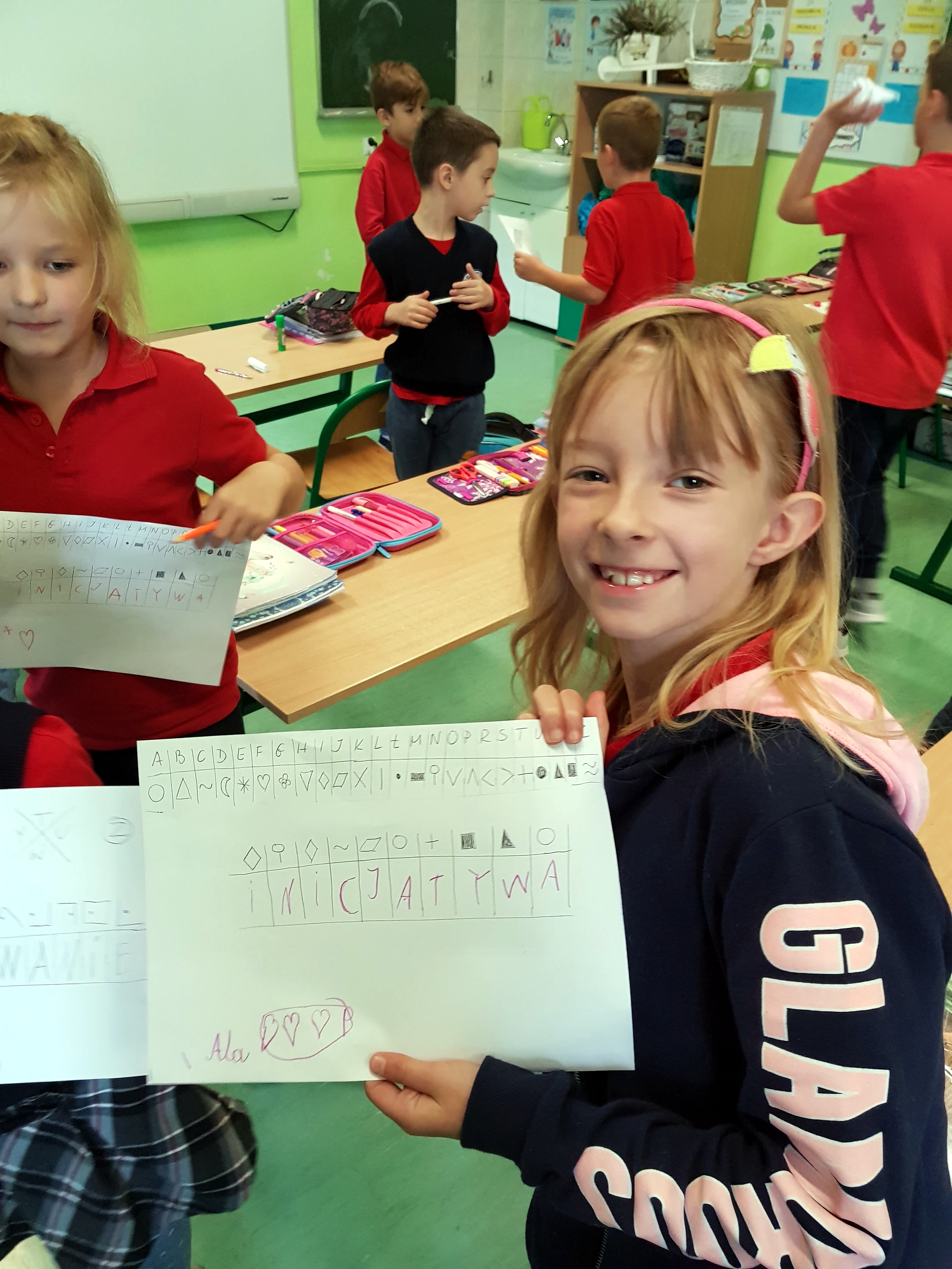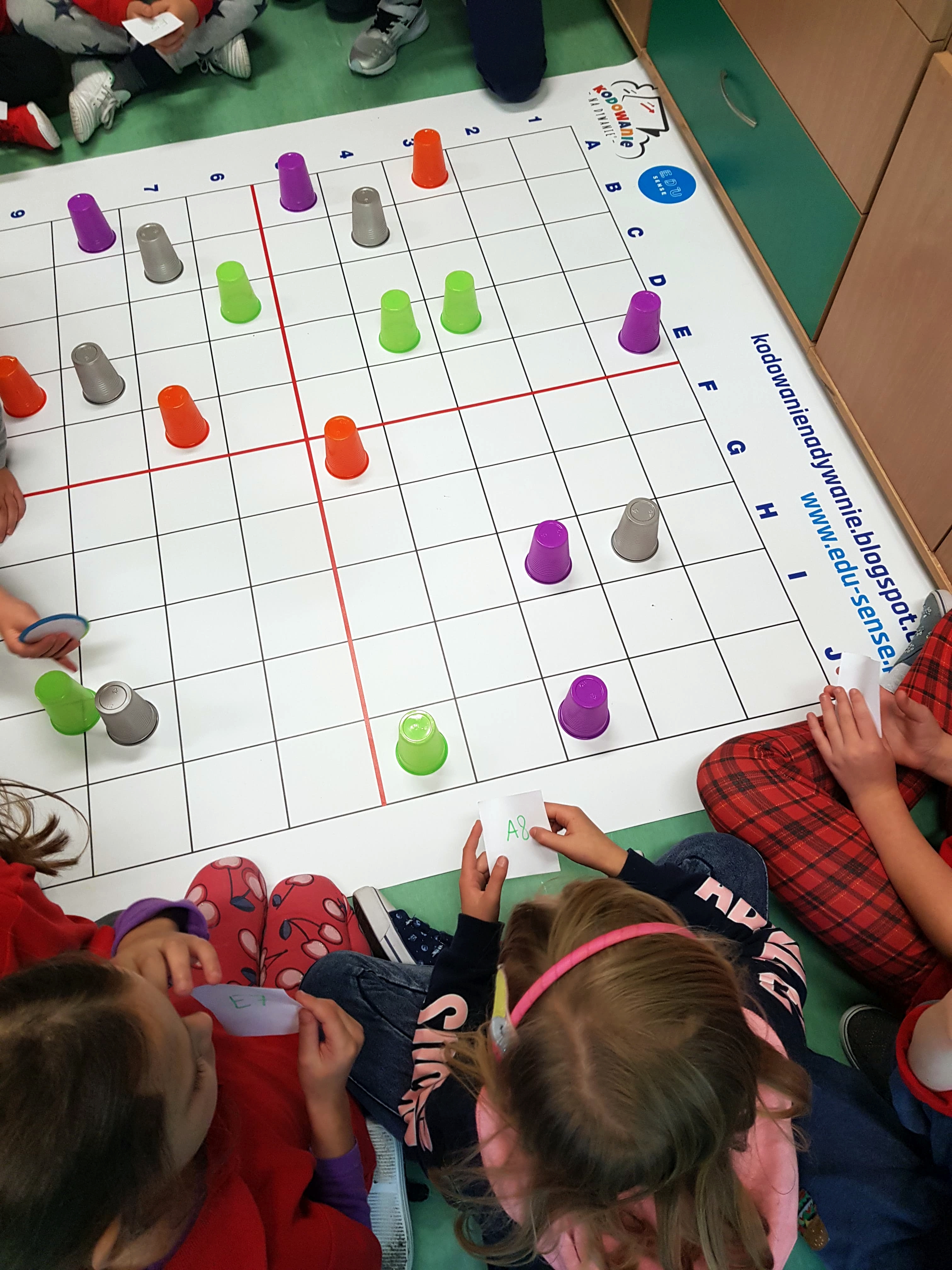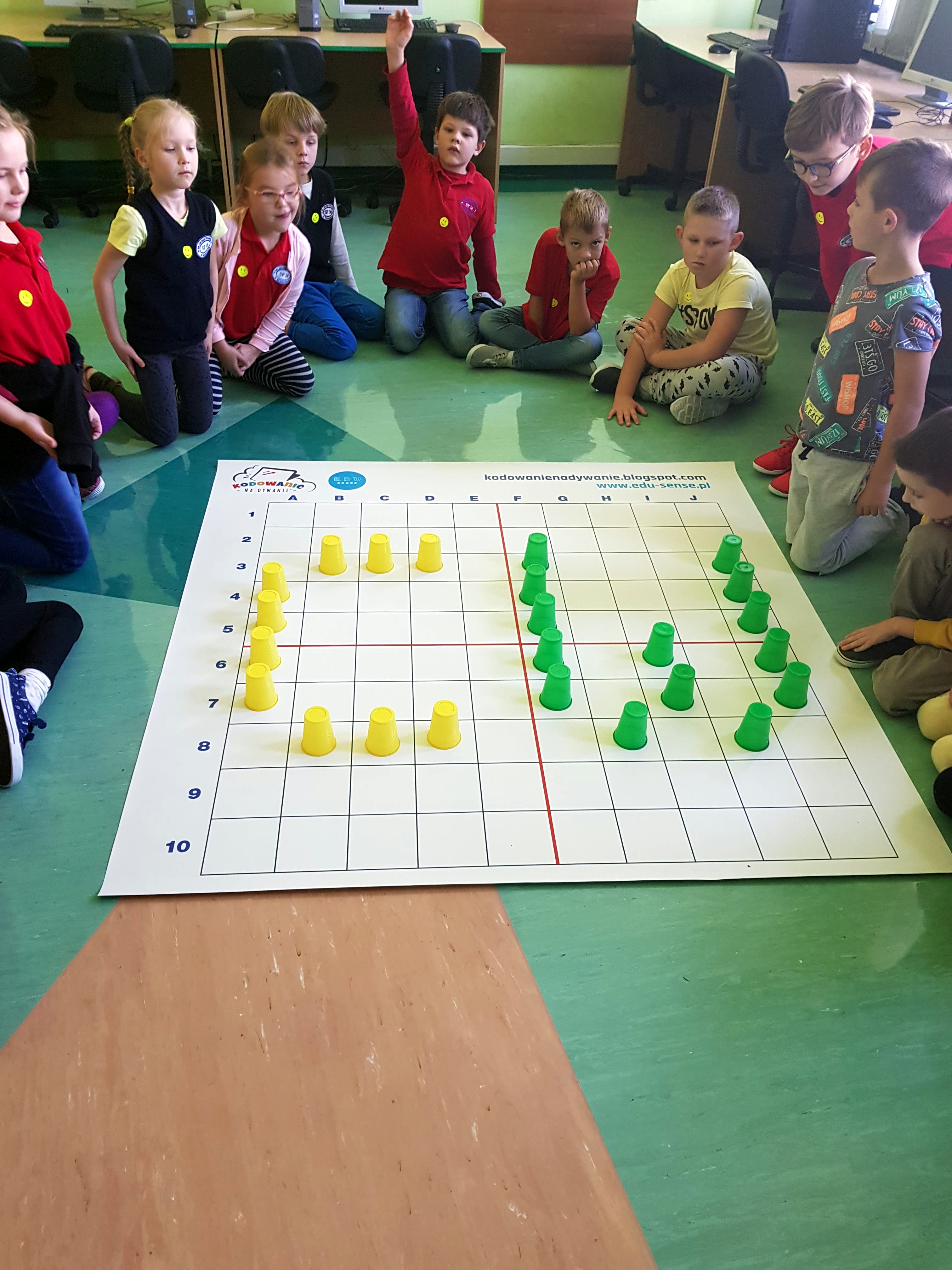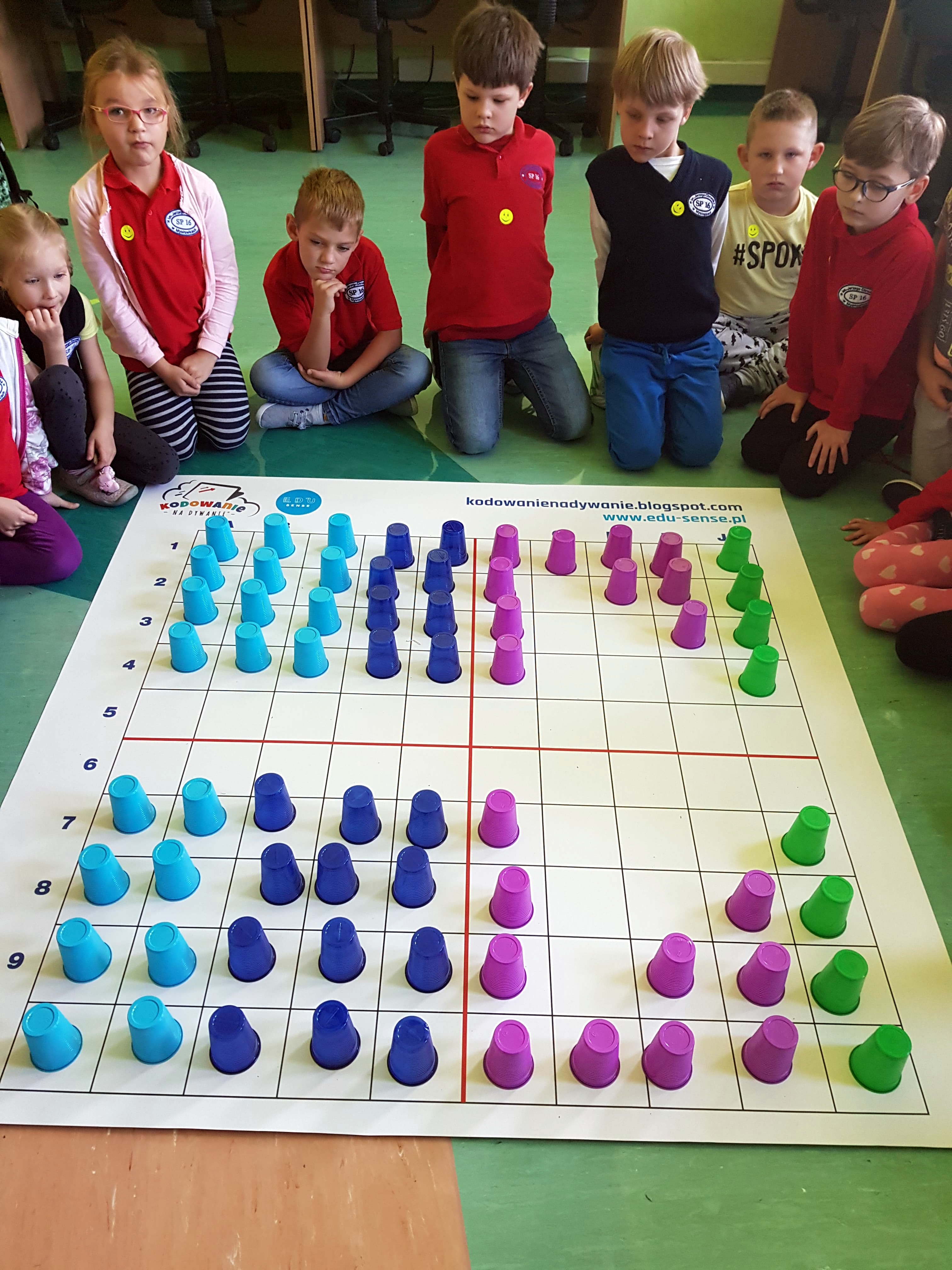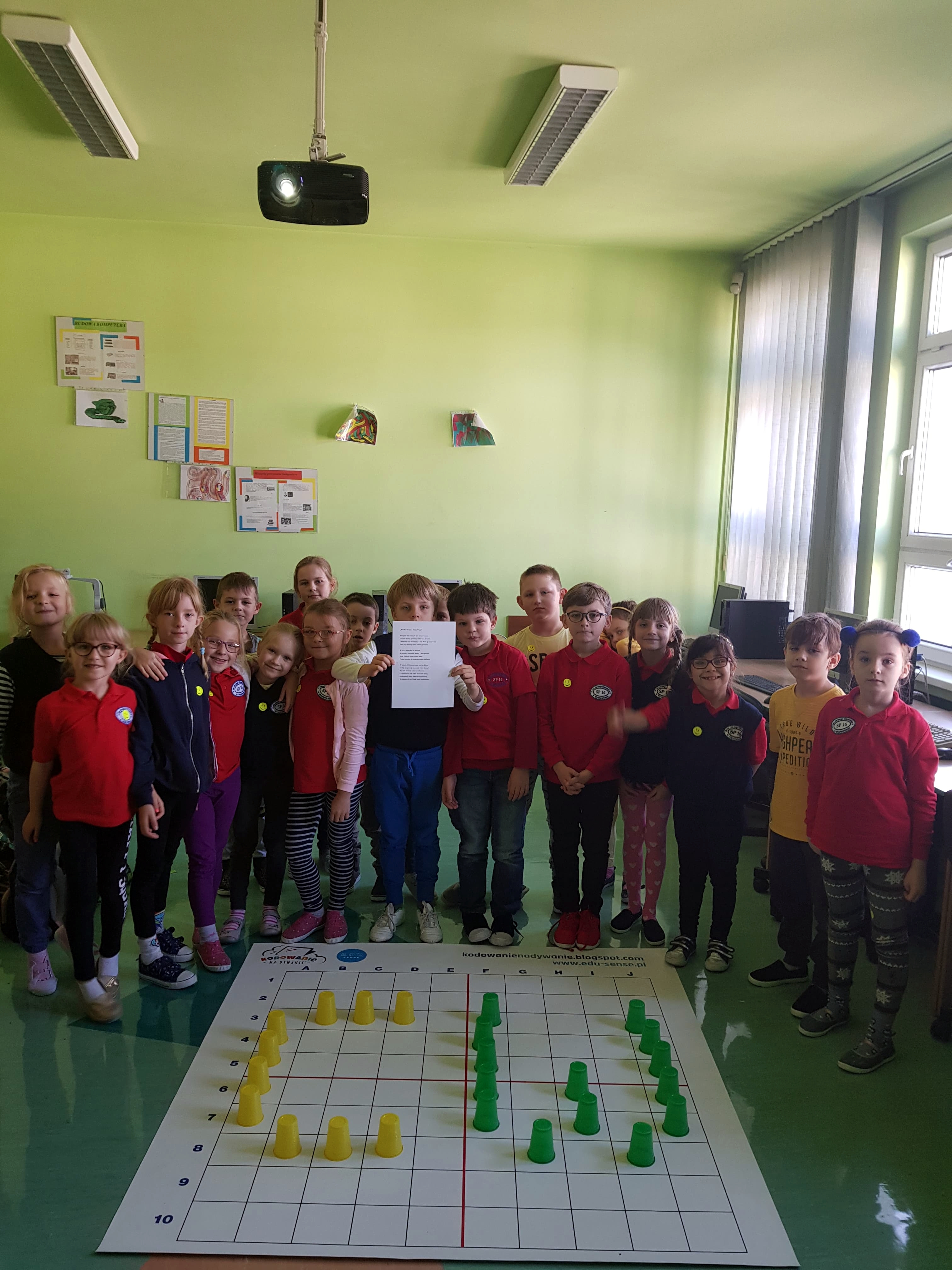 Zadania, które realizowano, to wynik uczestnictwa uczniów w ogólnopolskim programie edukacyjnym „Uczymy dzieci programować”. Aktywności wykonywano offline, czyli na macie edukacyjnej z wykorzystaniem kolorowych kubków i krążków. Zajęcia bardzo podobały się dzieciom, zwłaszcza zadania związane z szyfrowaniem informacji. Maluchy były zachwycone tym, że ich mała miejscowość znalazła się na europejskiej mapie „Code Week”. Za udział w zajęciach uczniowie otrzymali pamiątkowe dyplomy.