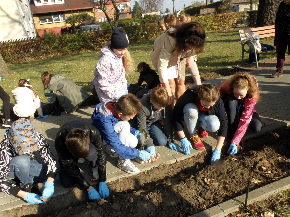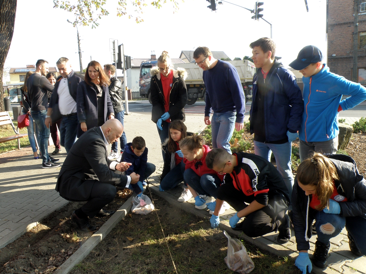 Chciałoby się rzec: No! Ładne kwiatki! Co z nich wyrośnie? Na razie nie wiemy, bo efekt sadzenia cebulek kwiatowych przy pomniku powstańczym na rynku w Kosztowach zobaczymy dopiero wiosną.