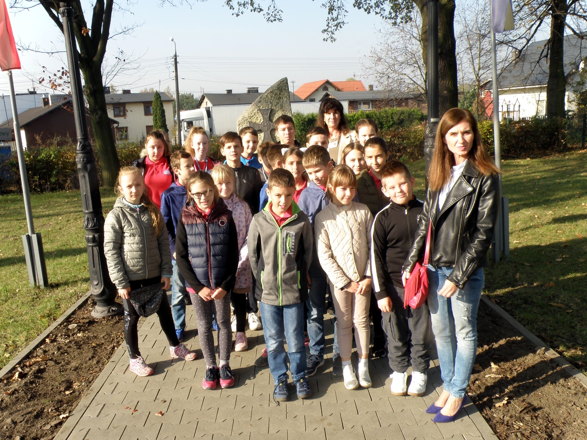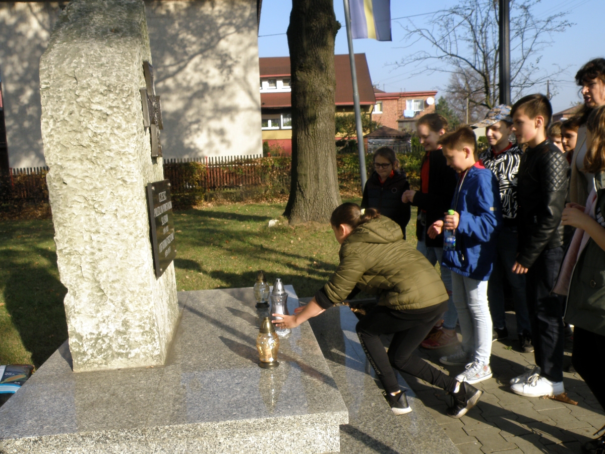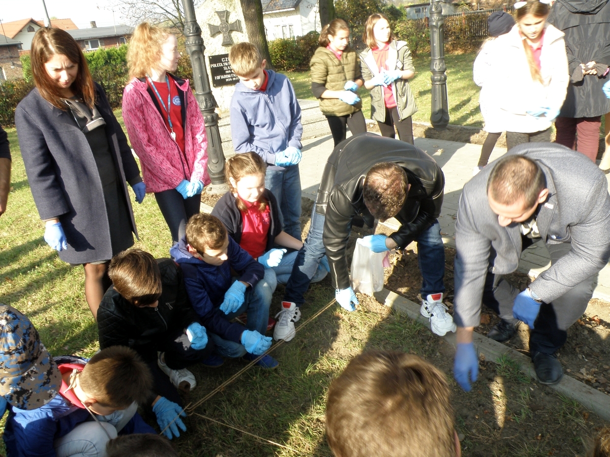 Po zasadzeniu wszystkich cebulek kwiatowych młodzież z „Szesnastki” zapaliła znicze pod pomnikiem i uczciła pamięć powstańców odśpiewaniem hymnu narodowego.