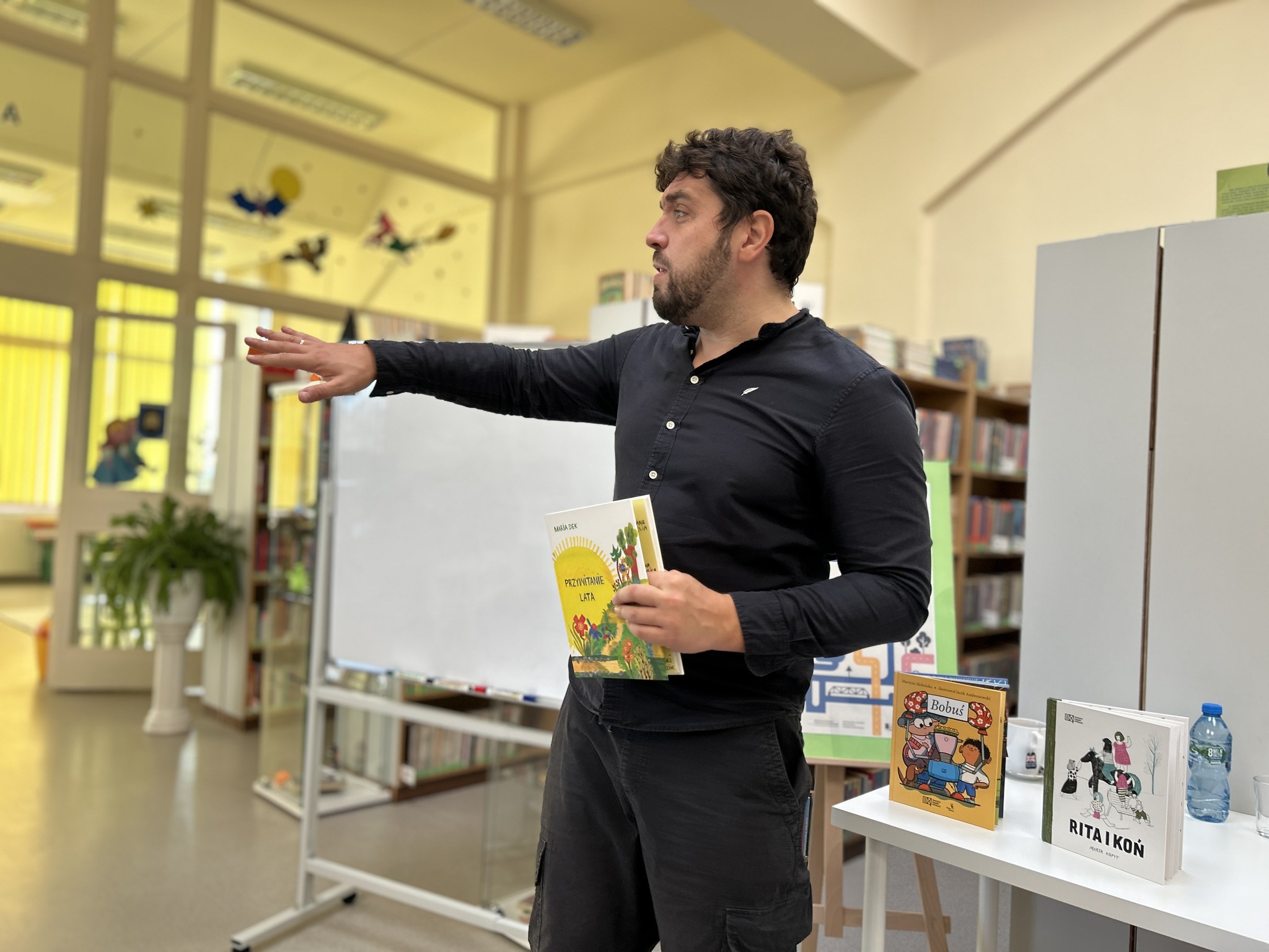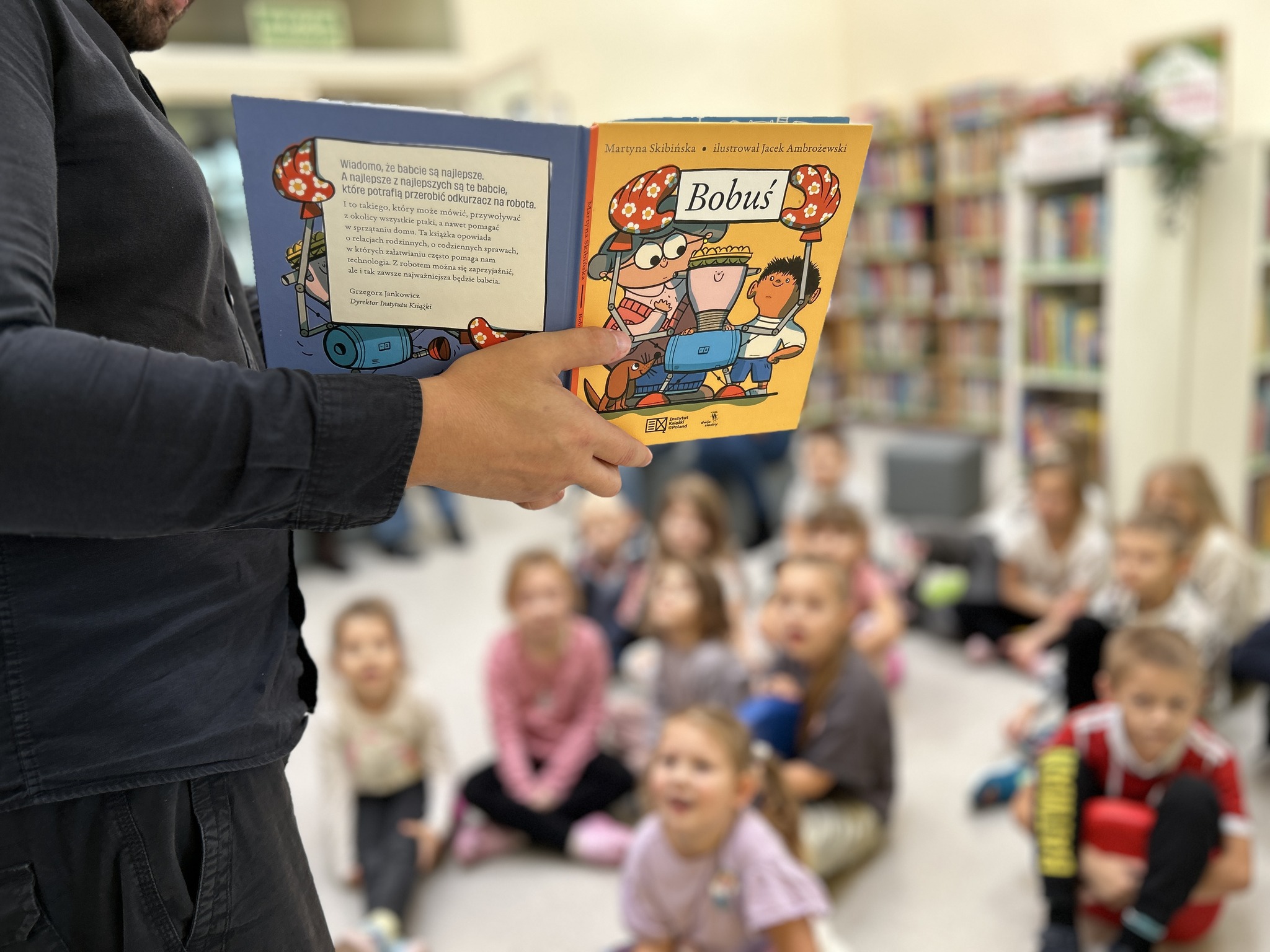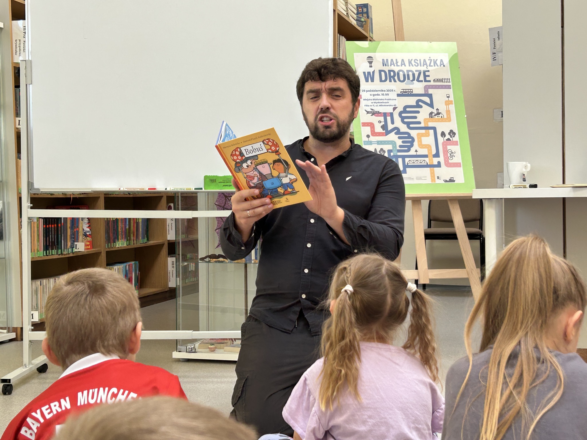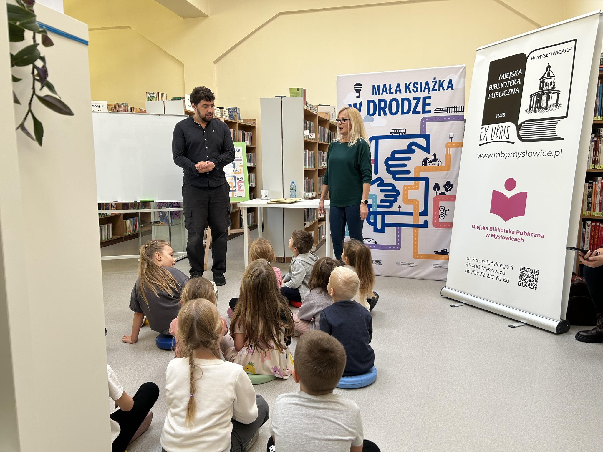 W środę 29 października do mysłowickiej biblioteki zawitały trzy najnowsze książki kampanii: „Rita i koń” Marty Kopyt, „Przywitanie lata” Marii Dek oraz „Bobuś” Martyny Skibińskiej. Stały się one bohaterami zajęć dla dzieci z Przedszkola nr 12, prowadzonych przez Mateusza Świstaka, znanego jako „Gadający Świstak” z projektu Baśnie na warsztacie.