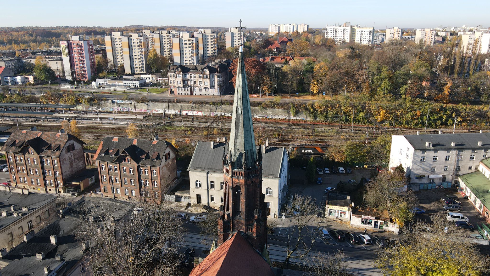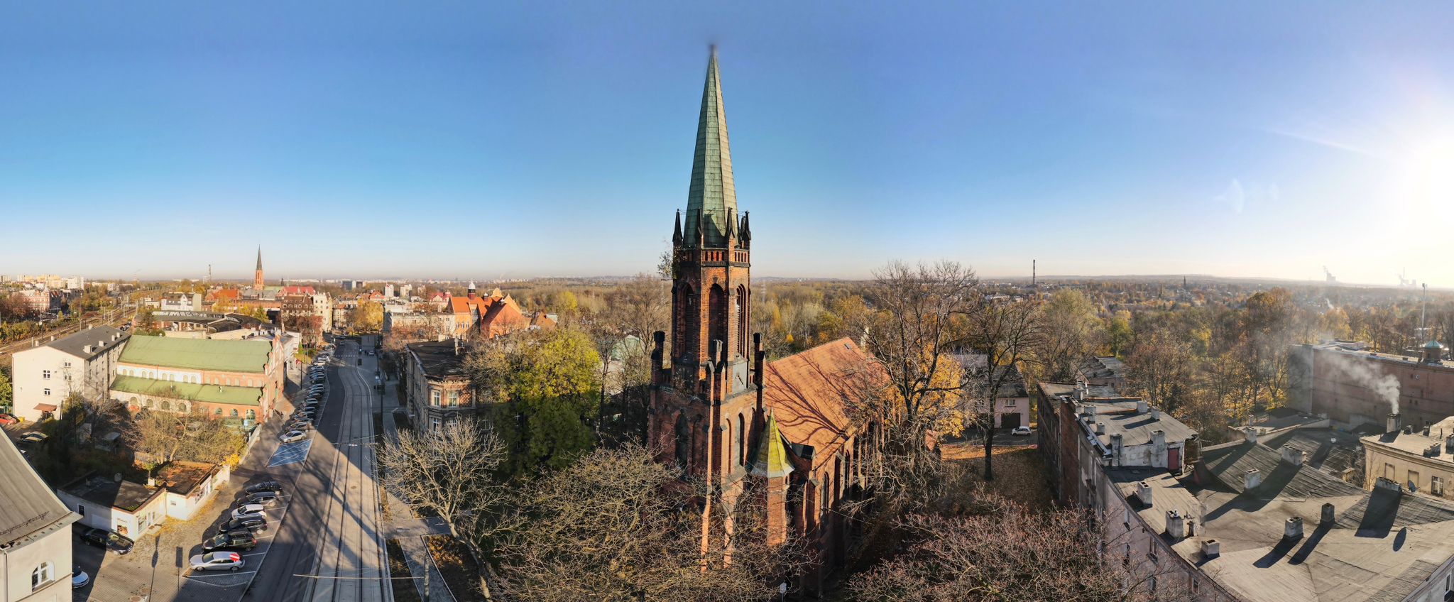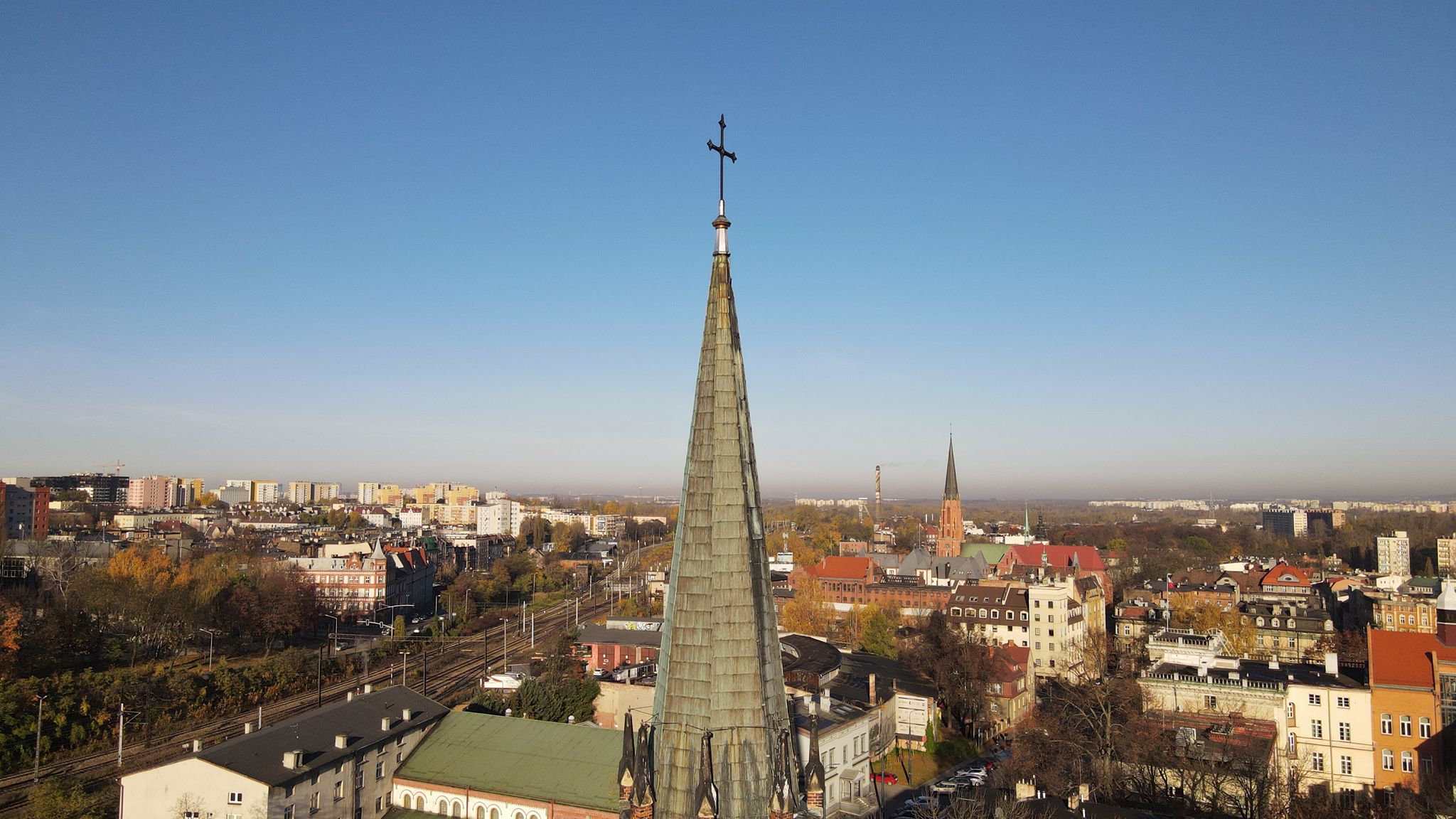 Zobaczcie z lotu ptaka neogotycką wieżę kościoła ewangelicko-augsburskiego Apostołów Piotra i Pawła w Mysłowicach. Przypomnijmy – ten wyjątkowy zabytek, obecny w miejskim krajobrazie od 1877 roku, wymaga pilnego remontu.