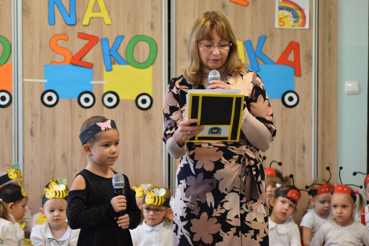 Uroczystość rozpoczęły same dzieci, które zaprezentowały, czego zdążyły się nauczyć podczas pierwszych miesięcy spędzonych w przedszkolnych salach. Piosenki, wierszyki i zdobytą wiedzę nagrodziły „uśmiechniętymi” tabliczkami dyrektorki Przedszkola nr 5 Barbara Gajówka i Aleksandra Marzec, naczelniczka wydziału edukacji Małgorzata Słonina oraz przewodnicząca rady rodziców Anna Kaczmarzyk.