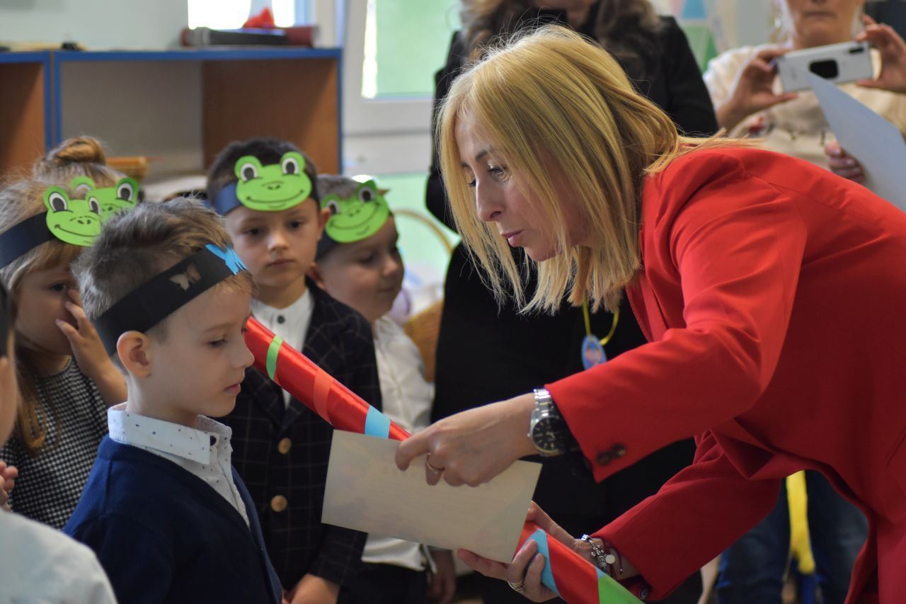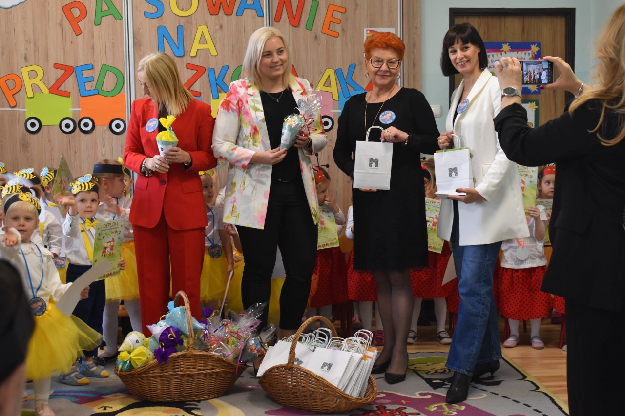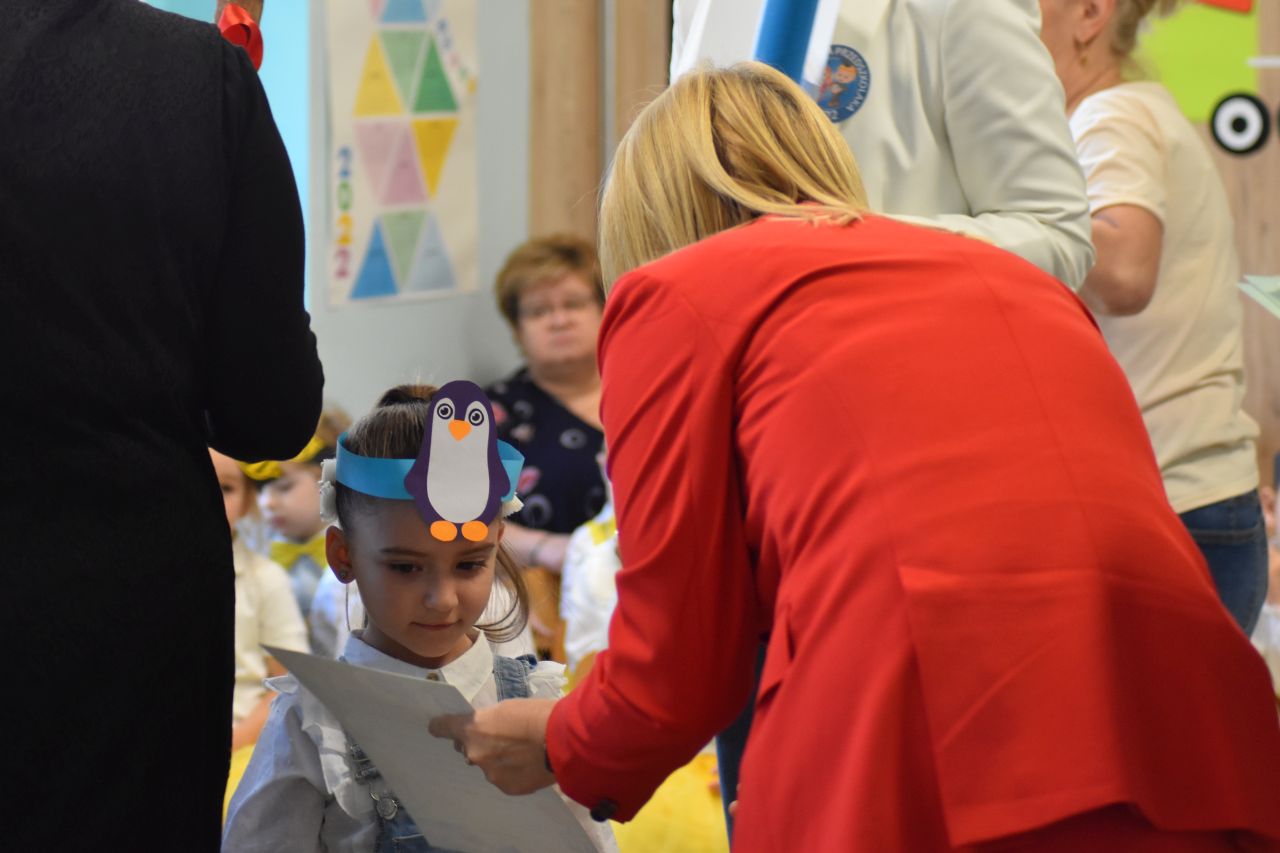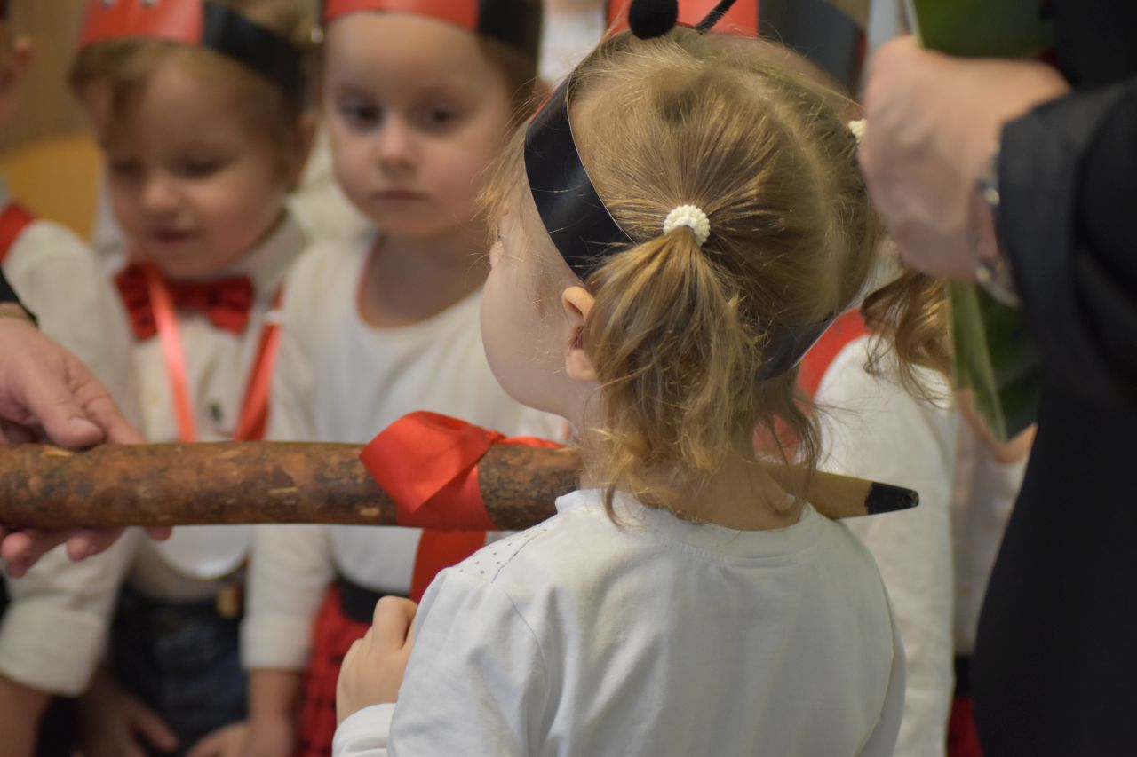 Później przyszedł czas na tradycyjne pasowanie ogromnymi ołówkami. Maluchy przyrzekły, że będą uczyć się, bawić i zawierać przyjaźnie jak na przedszkolaki przystało. Nie obyło się bez prezentów: minityt i zestawów gadżetów ufundowanych przez miasto i radę rodziców.