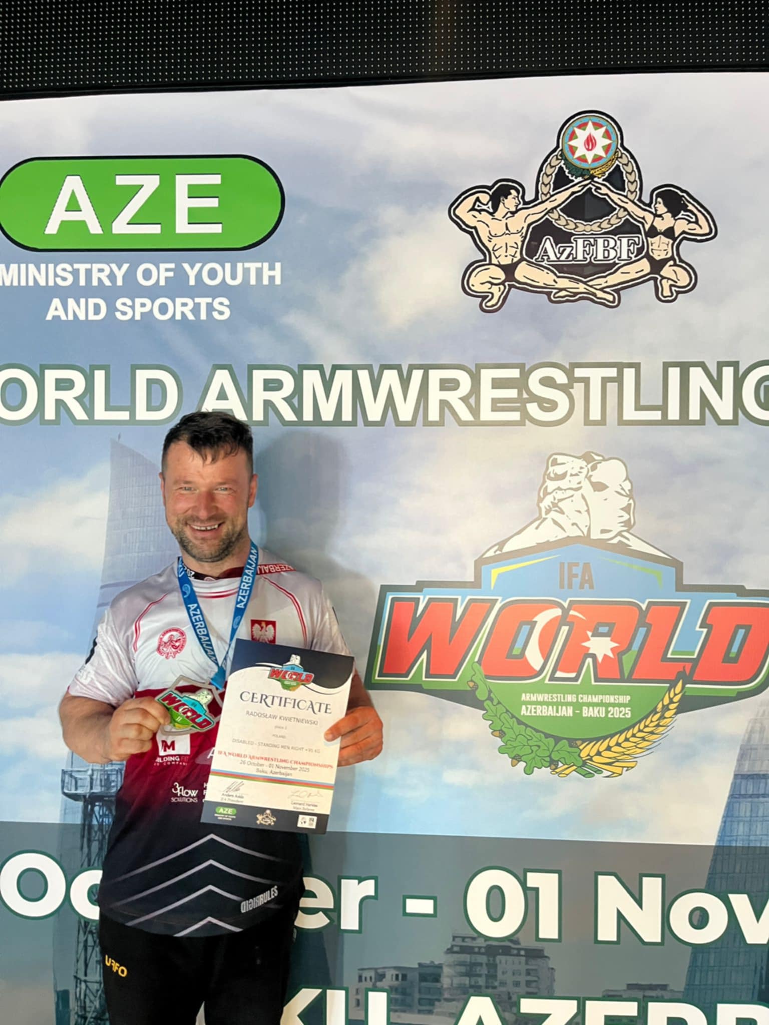 W dniach 26–31 października w Baku odbyły się Mistrzostwa Świata w Armwrestlingu. Mysłowiczanin Radek Kwietniewski startował w kategorii do 95 kg i zdobył tytuł wicemistrza świata na prawą rękę oraz czwarte miejsce na lewą.