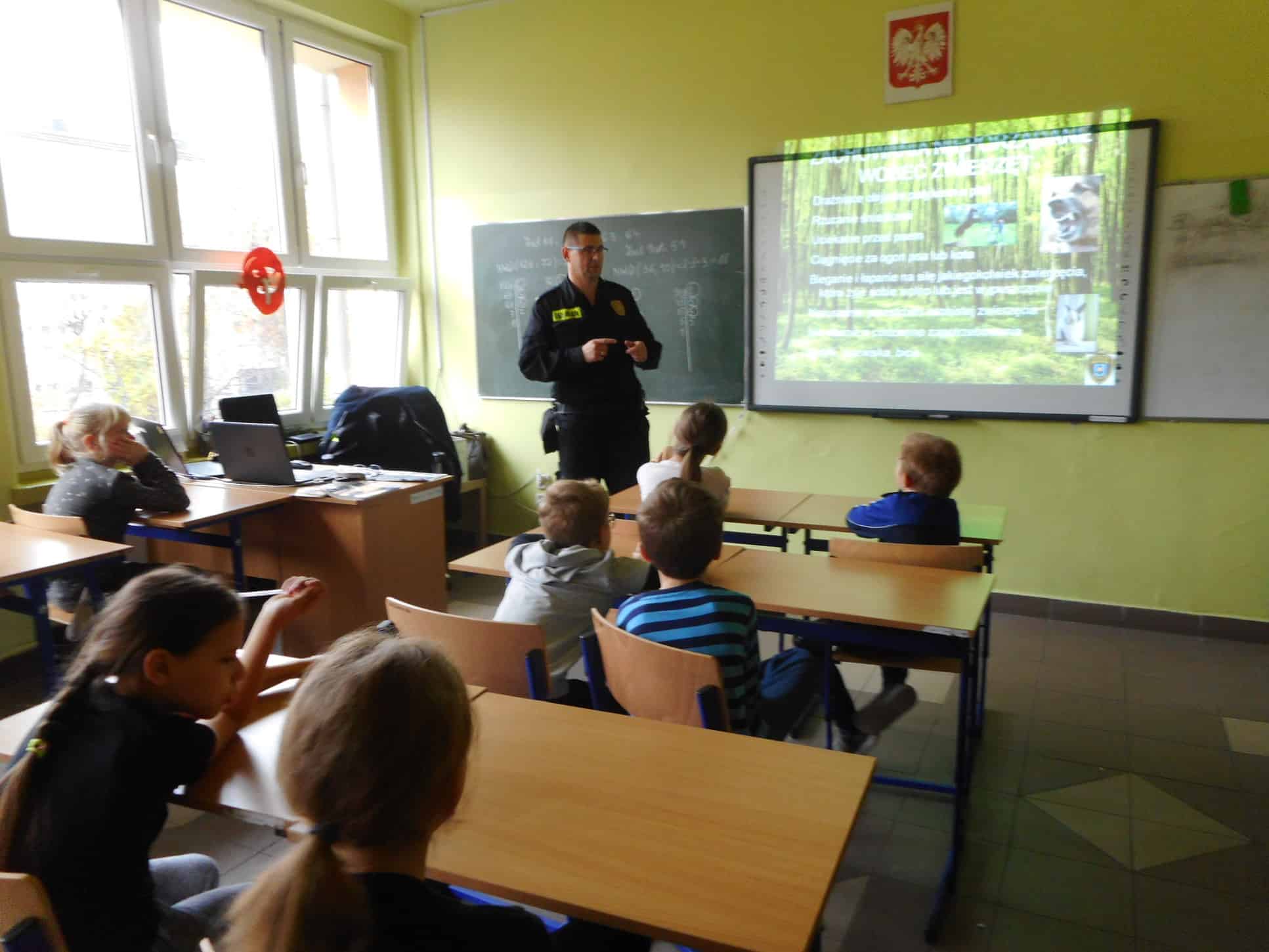 Strażnicy uczą bezpiecznych zachowań oraz uwrażliwiają dzieci na rozsądną pomoc w kontakcie z rannym zwierzęciem. Strażnicy wskazali instytucje, które pomagają zwierzętom na terenie naszego miasta.