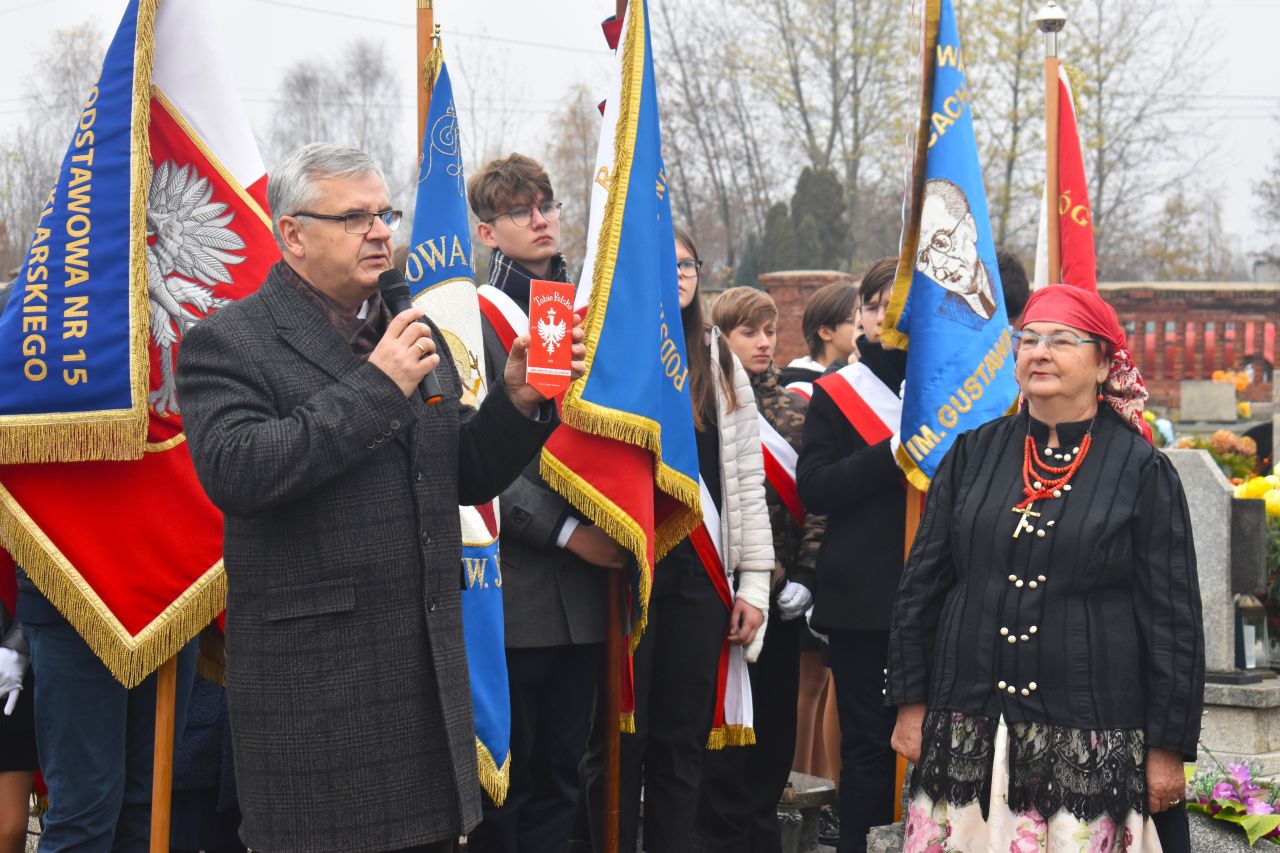 – Odwzorowując sztandar w takiej postaci, kładąc go na groby uczestników powstań śląskich, wyrażamy im naszą wdzięczność. Chcemy też, aby w ten sposób inni odwiedzający groby na tym cmentarzu zwrócili uwagę na ten jeden nagrobek i podobnie jak my dzisiaj uświadomili sobie, że są dłużnikami tamtego pokolenia – powiedział na uroczystości dr Andrzej Sznajder, dyrektor Oddziału IPN-u w Katowicach.