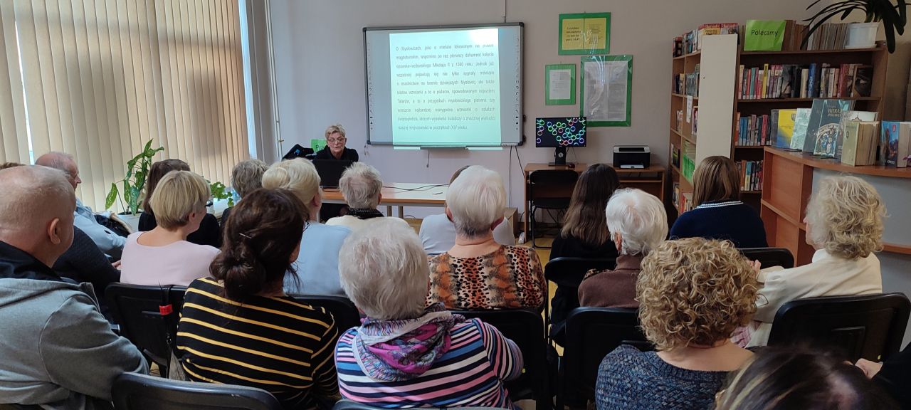 „Trochę historii w teraźniejszości. Spacerkiem przez Mysłowice. Poznajemy patronów naszych ulic” – to hasło przewodnie prezentacji, z jaką zapoznali się uczestnicy spotkania zorganizowanego w bibliotece przy ul. Oświęcimskiej. To kolejny etap projektu „Cywilizacja 60+” sfinansowanego ze środków Narodowego Instytutu Wolności – Centrum Rozwoju Społeczeństwa Obywatelskiego.