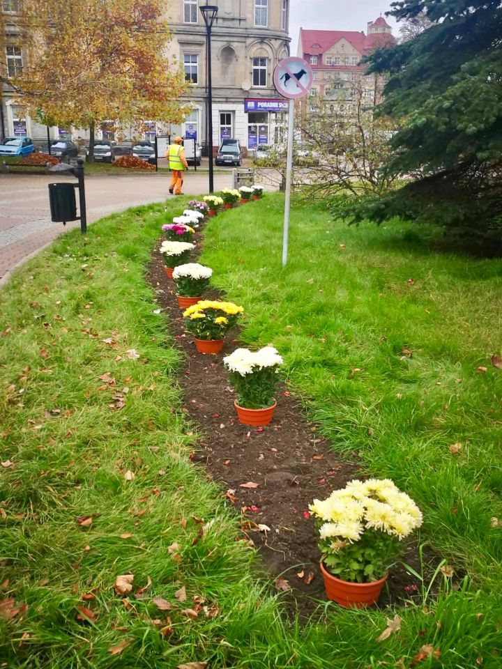 Zamiast na śmietnikach, wylądowały m.in. na rynku czy pl. Wolności. Kwiaty, których handlarzom nie udało się sprzedać na Wszystkich Świętych, cieszą teraz oczy mieszkańców w centrum naszego miasta.