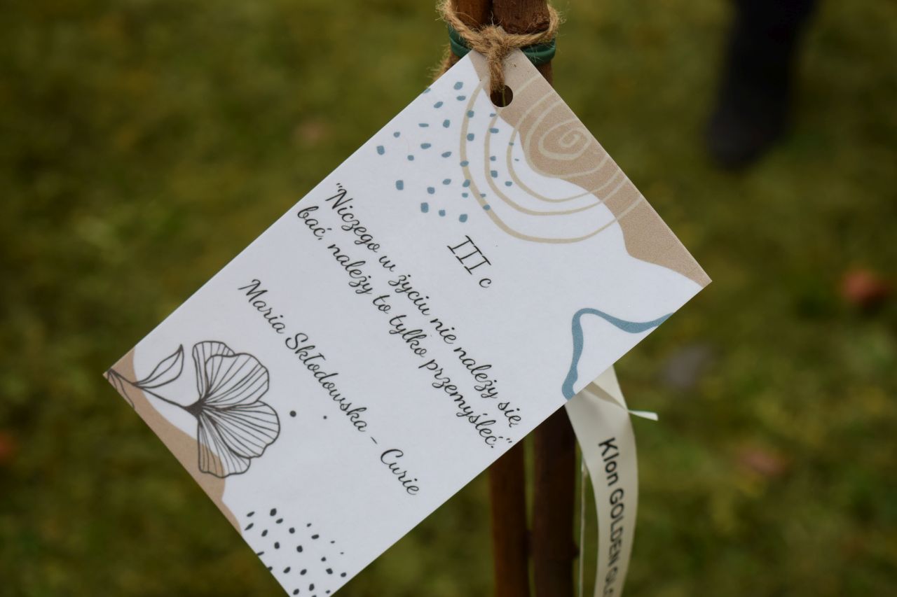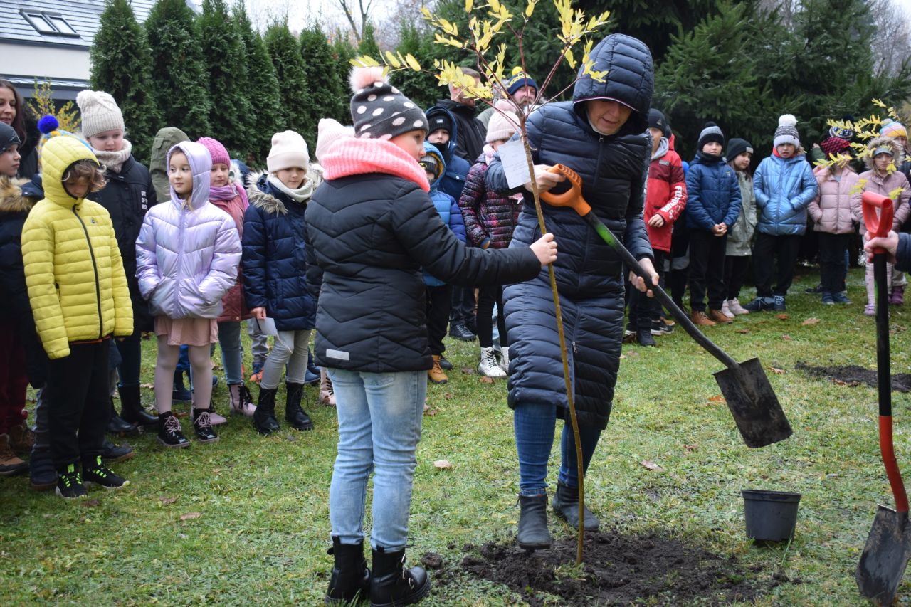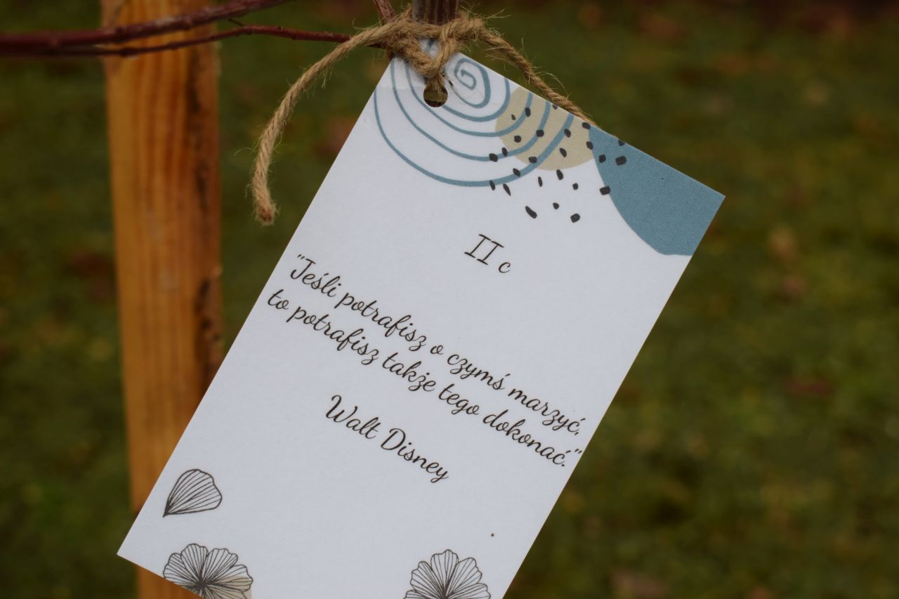 – Każdym z drzew opiekować się będzie inna klasa. Uczniowie przymocowali do nich cytaty ulubionych postaci literackich, ale nie tylko – wyjaśnia Aneta Szczęsny, dyrektorka Szkoły Podstawowej nr 15 z Oddziałami Dwujęzycznymi im. Alfreda Szklarskiego w Mysłowicach.