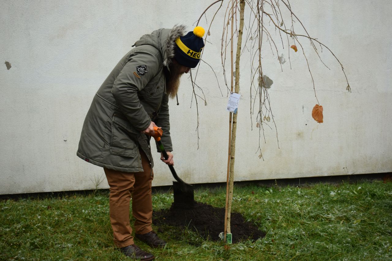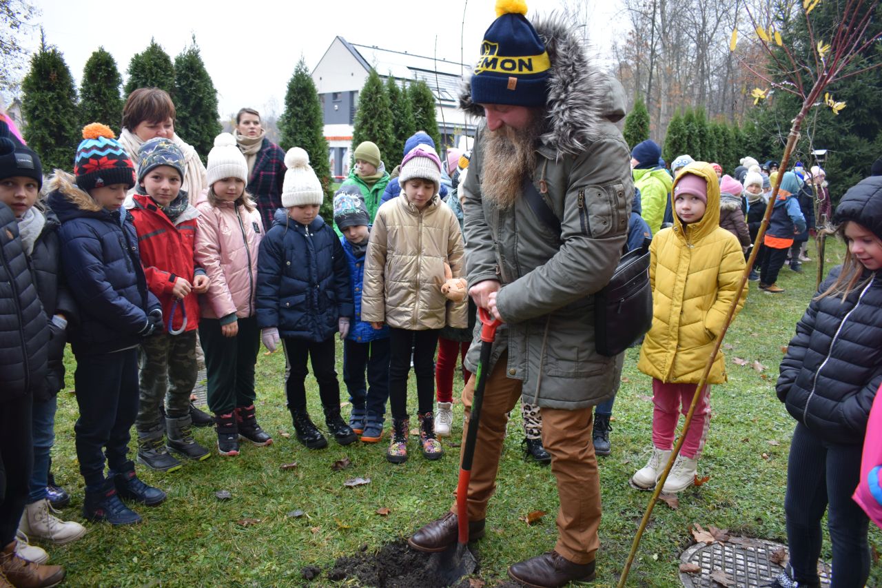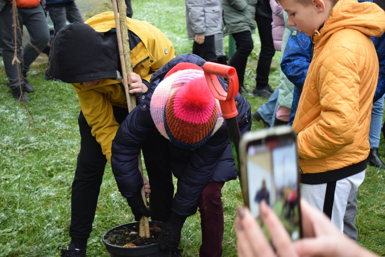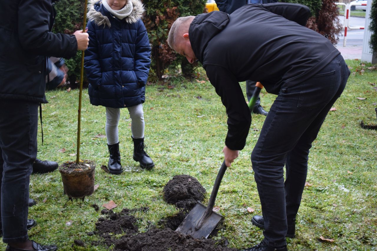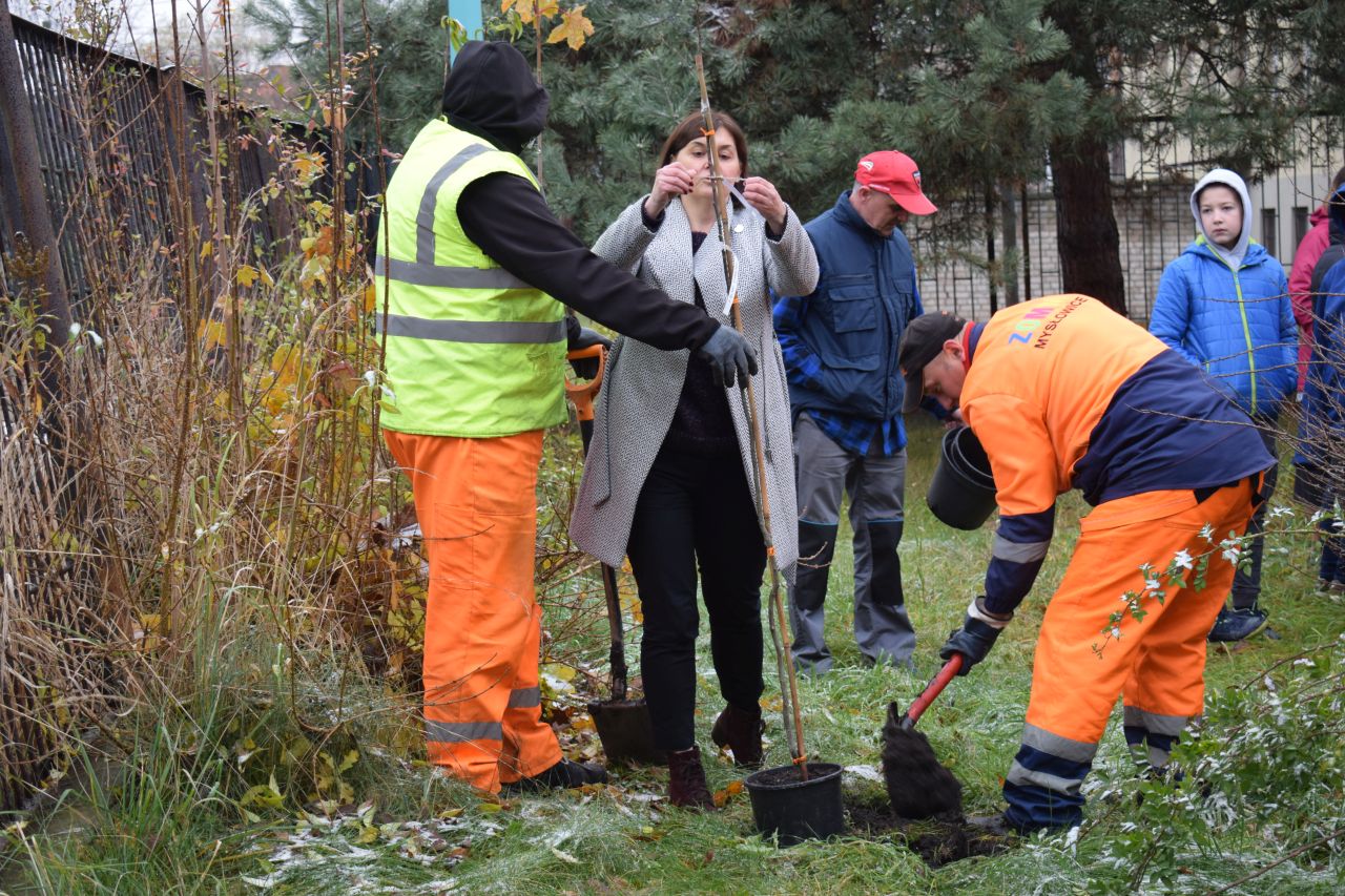 W sadzeniu pomagali pracownicy Zakładu Oczyszczania Miasta Mysłowice, prezydent Mysłowic Dariusz Wójtowicz ze swoim zastępcą Mateuszem Targosiem oraz nauczycielki i uczniowie „Piętnastki”, bo odtąd będą to ich drzewka.