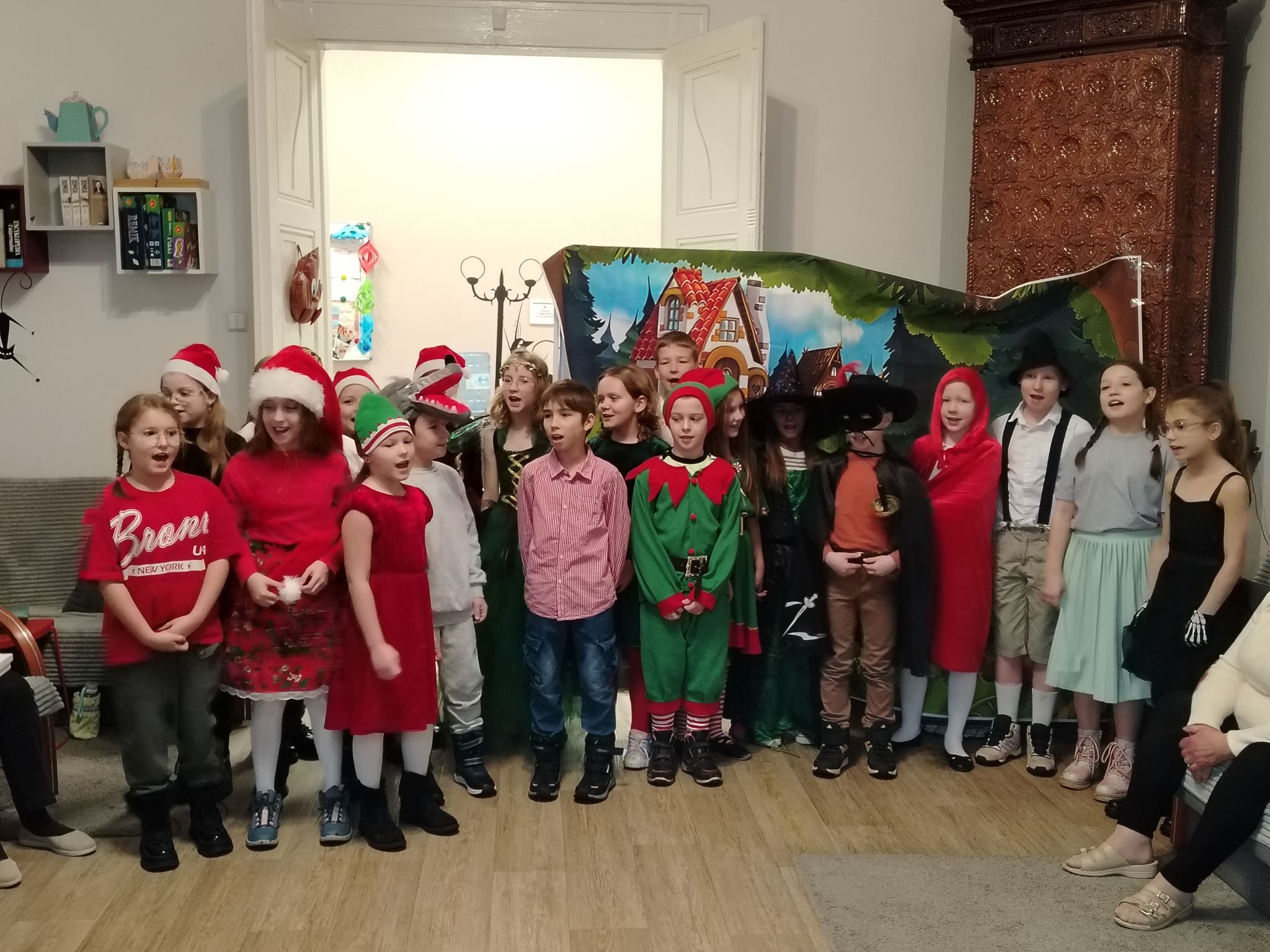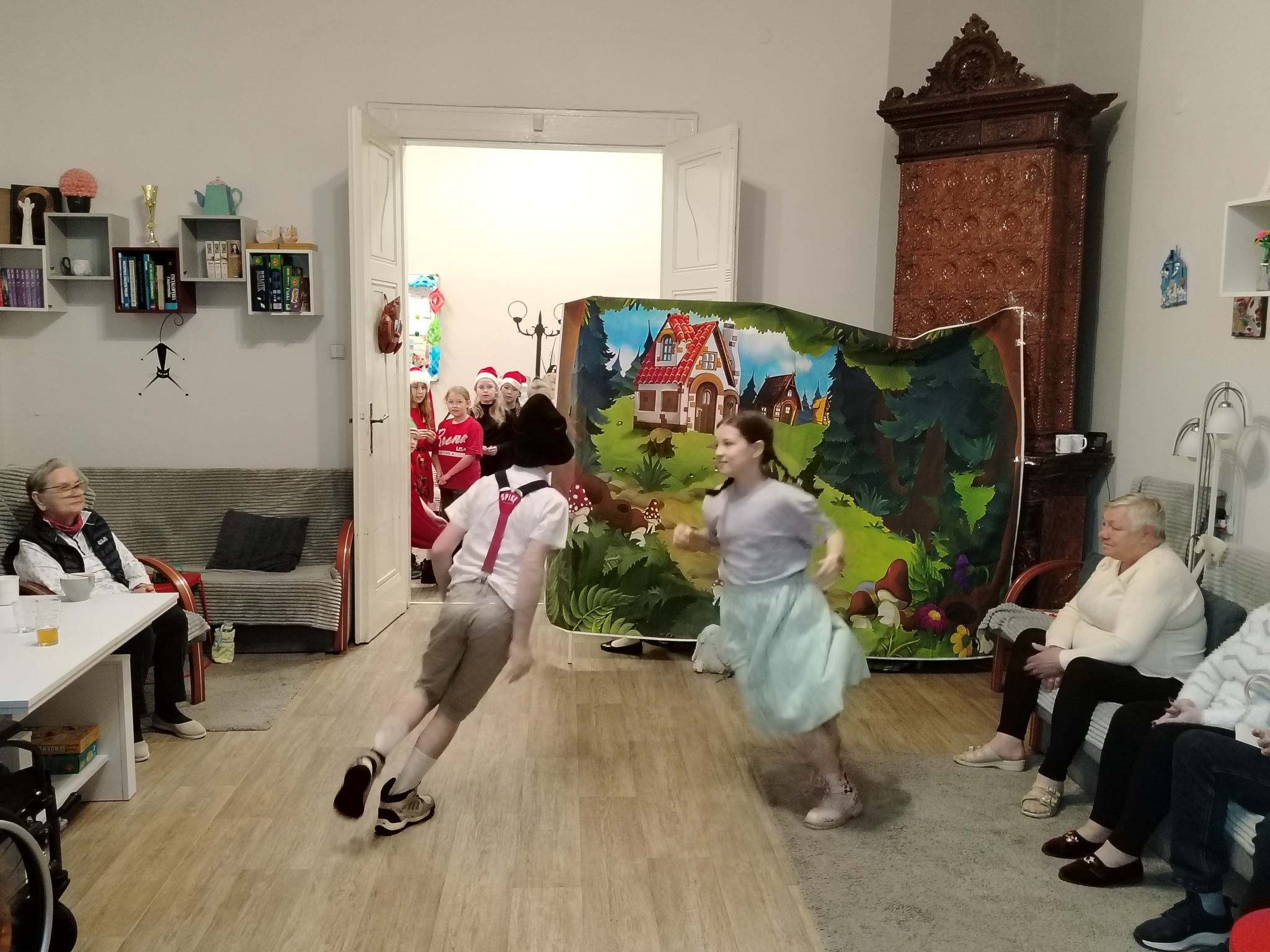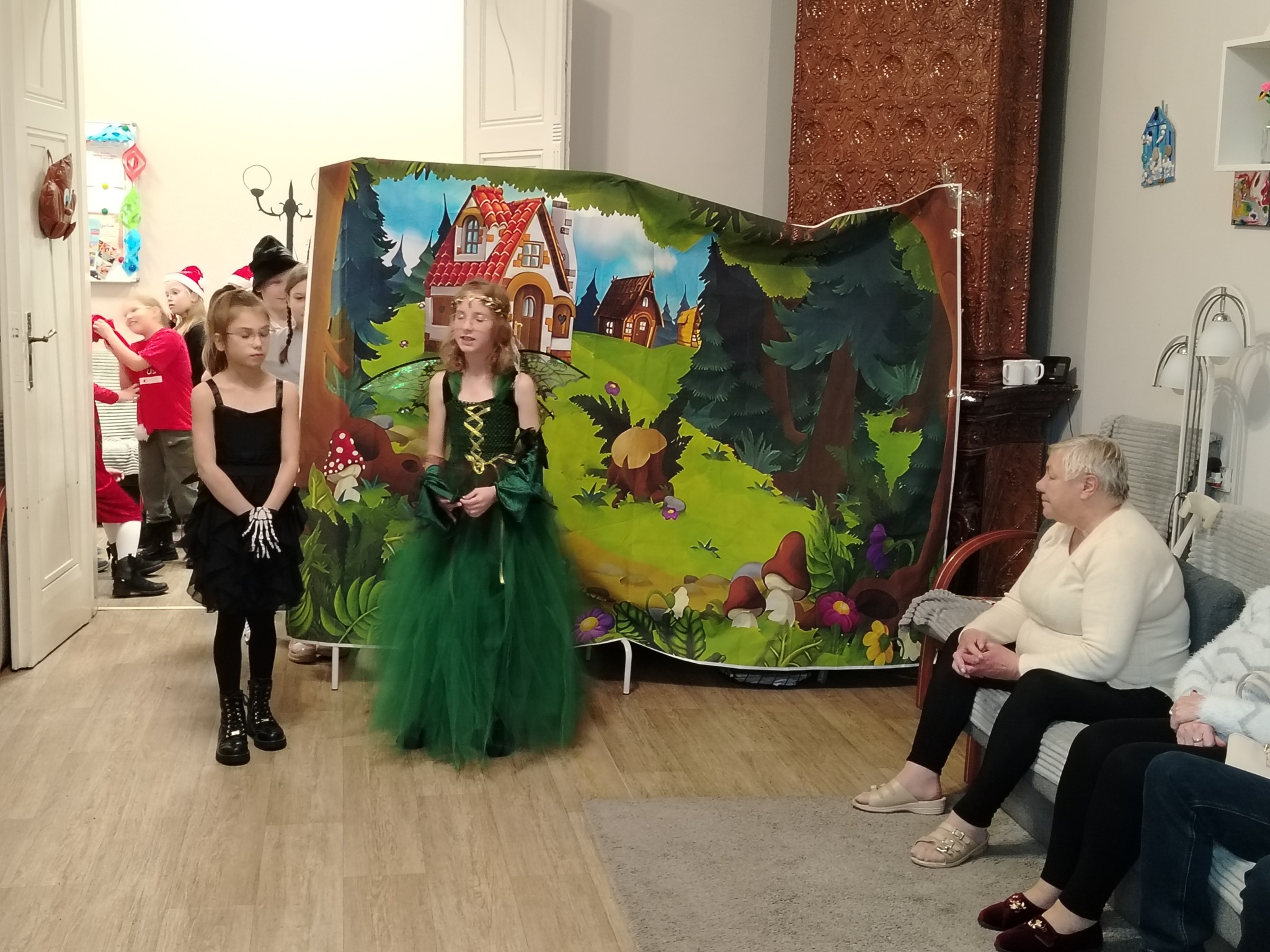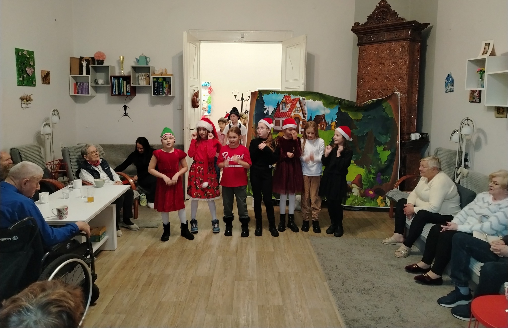 Klasy 3a i 3b Szkoły Podstawowej nr 9 w Mysłowicach, wraz z nauczycielkami Anną Nygą i Sonią Stuchlik, przygotowały występ, w którym prym wiodły postacie z ulubionych bajek, od Jasia i Małgosi, przez Czerwonego Kapturka, aż po złe wiedźmy, Babę Jagę i króla Baj. Dzieci wystąpiły w kolorowych kostiumach i zaśpiewały piosenki, które zachwyciły pensjonariuszy, za co ci nagrodzili młodych aktorów gromkimi brawami.