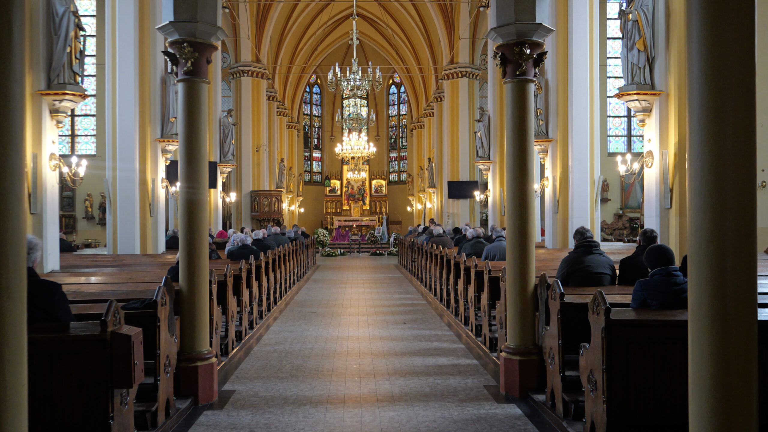 Uroczystości żałobne rozpoczęła msza święta odprawiona w kościele Najświętszego Serca Pana Jezusa. W świątyni zgromadzili się dawni współpracownicy profesora, jego uczniowie, przedstawiciele instytucji kultury, reprezentanci szkół oraz mieszkańcy, dla których był autorytetem i przewodnikiem po historii Mysłowic.