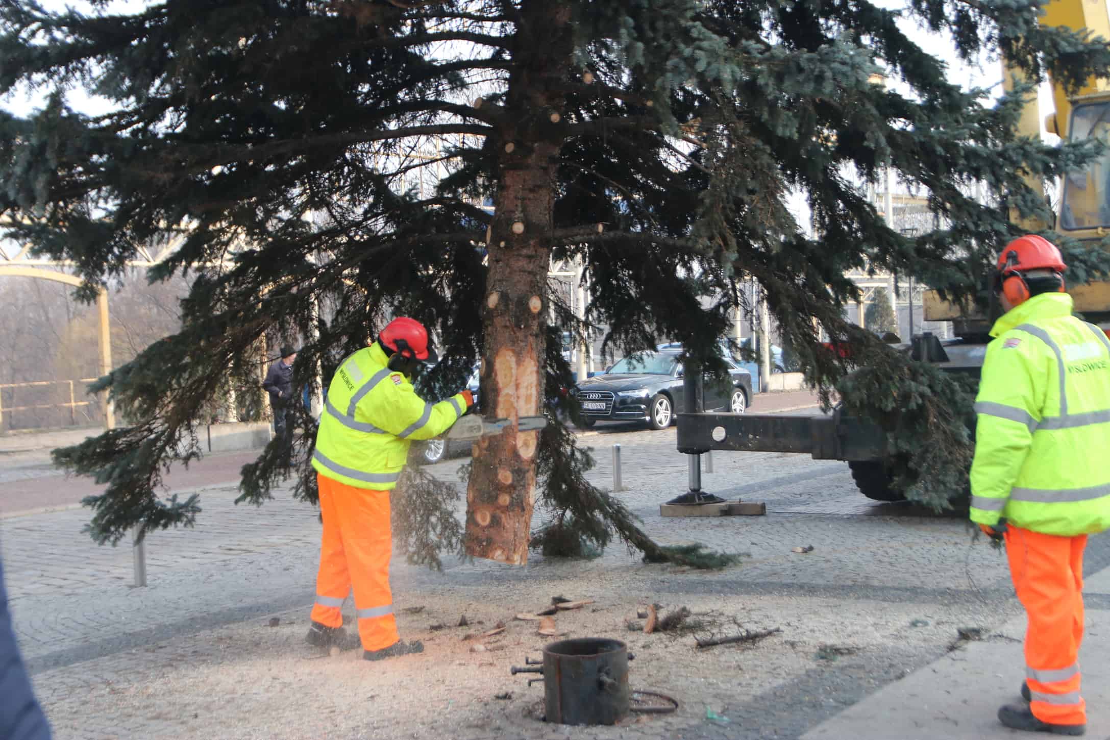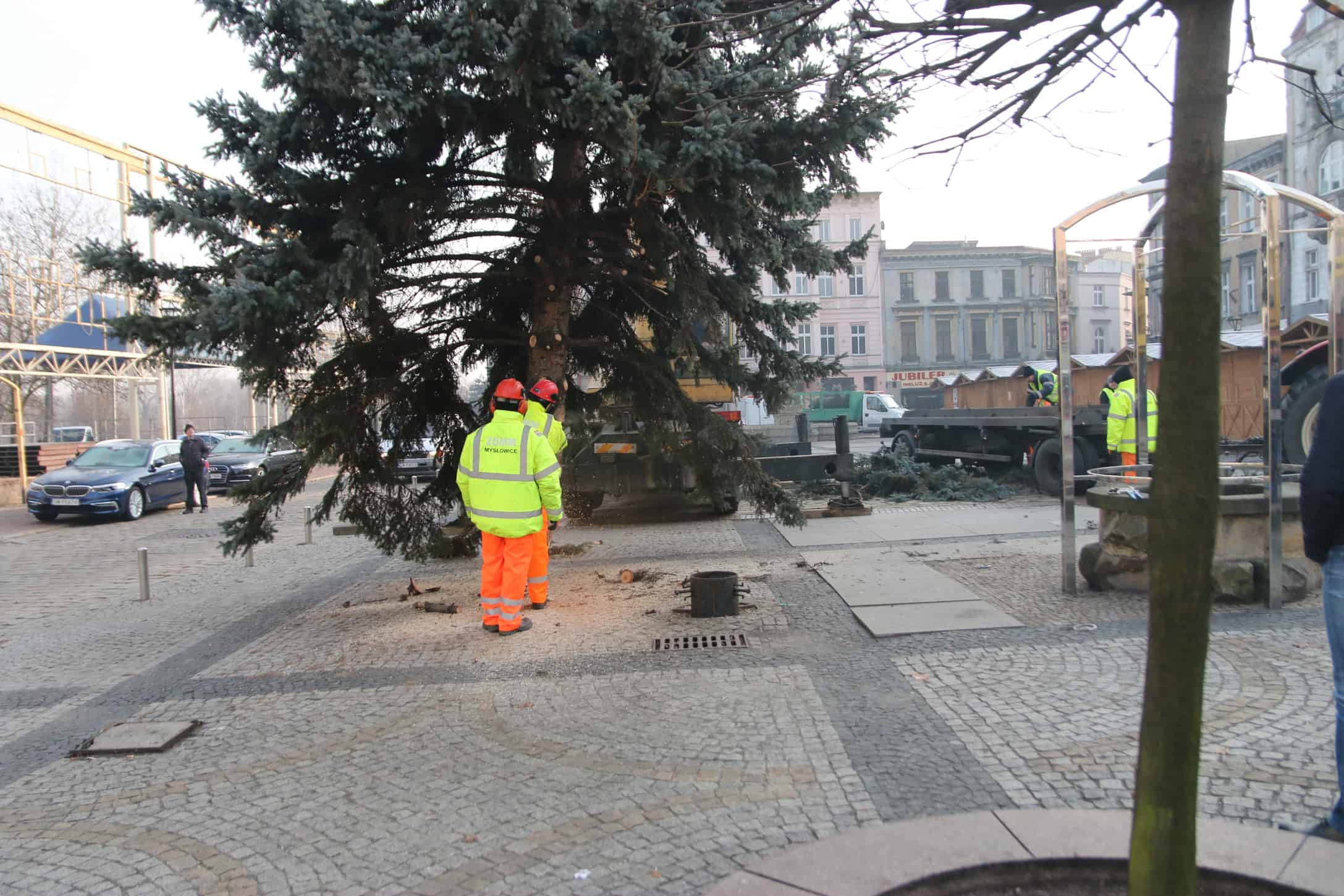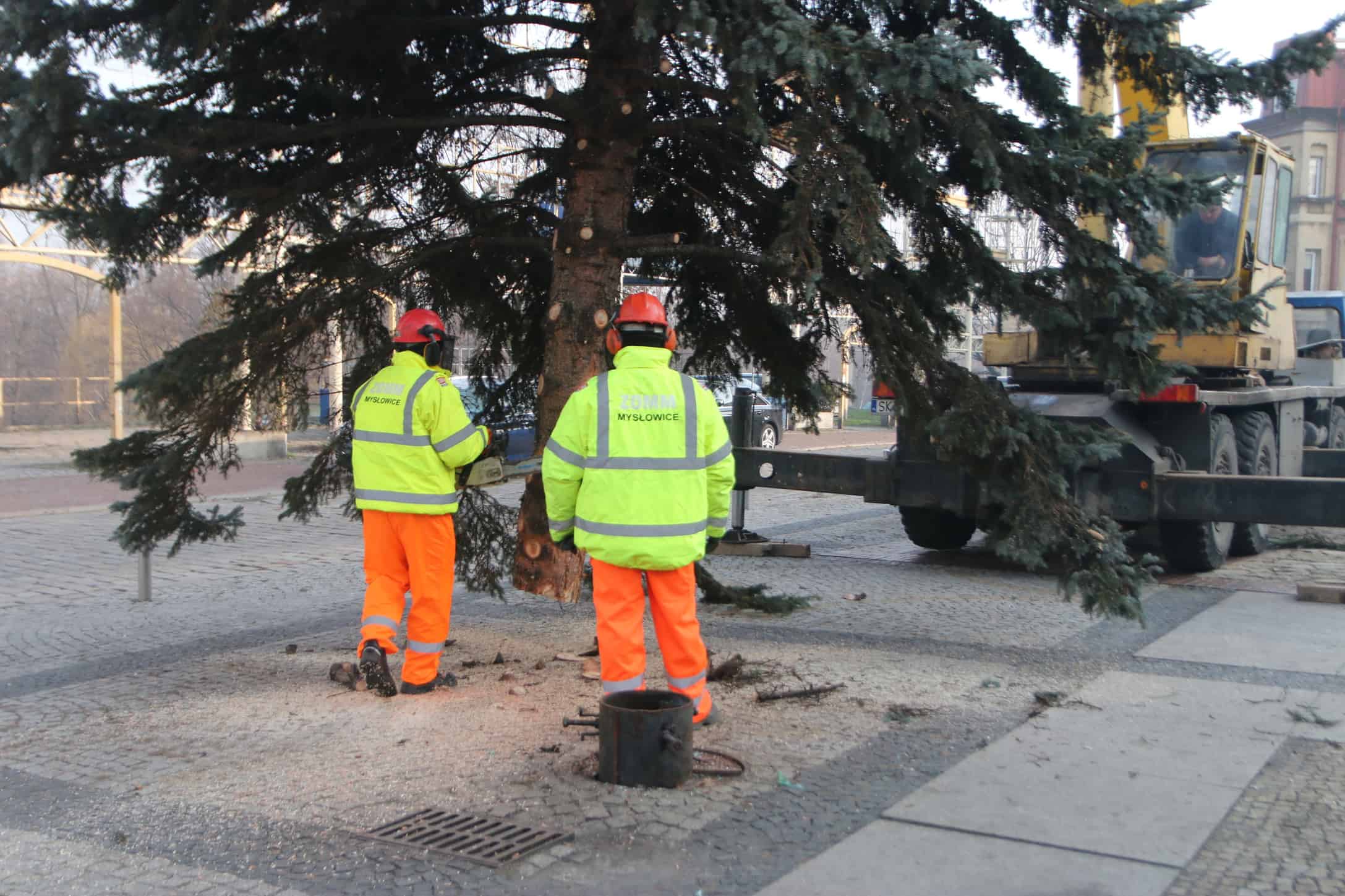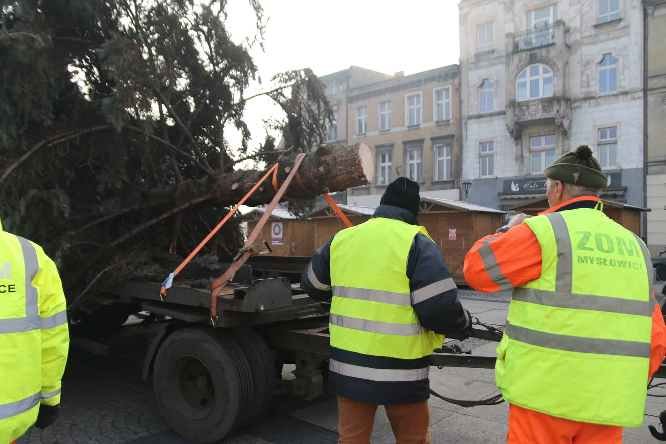 Świąteczne drzewko stanęło już na płycie mysłowickiego Rynku. Choinka będąca podarunkiem od mieszkanki ulicy Wyspiańskiego uświetni główny plac miasta podczas tegorocznych świąt Bożego Narodzenia.