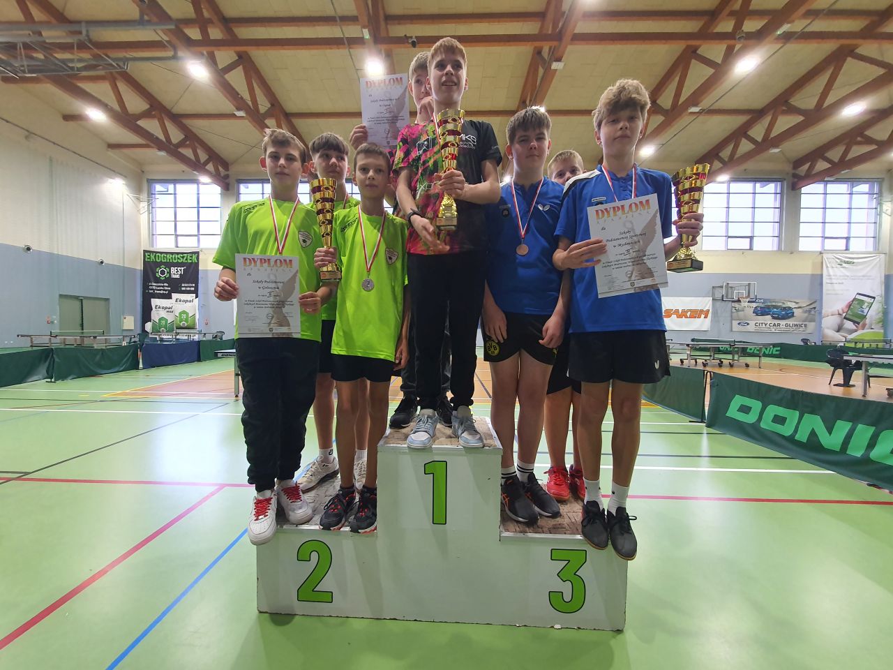 Na finałowy turniej województwa Śląskim w tenisie stołowym, który odbył się 28 listopada 2024 roku w Łaziskach Górnych zjechało się osiem najlepszych drużyn regionu. W zawodach rywalizowali uczniowie klas 7-8. Drużyna chłopaków w składzie: Andrzej Ratka, Dima Antoniec i Tymon Urban wywalczyli wysokie trzecie miejsce.