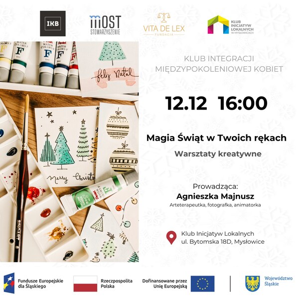 Lubisz spędzać czas na twórczym działaniu? Klub Integracji Międzypokoleniowej zaprasza kobiety na świąteczne warsztaty „Magia Świąt w Twoich Rękach”.