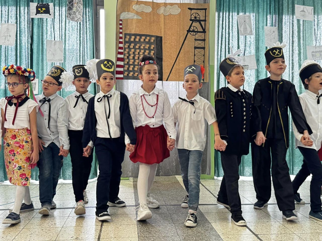 „Niech węgiel będzie miękki, jak czekolada, niech słonecznik świeci od serca” – te i jeszcze wiele innych pięknych życzeń padło z ust dzieci podczas obchodów Barbórki. Uczniowie klas 3a i klasy 3b pod okiem wychowawców, Marzeny Kurdziel i Katarzyny Kubeczki, zachwycili występem. Dyrektor Kozioł-Mospinek podziękowała uczniom za ogromny wkład w akademię, prezydentowi Mysłowic Dariuszowi Wójtowiczowi za kultywowanie śląskich tradycji, a także przypomniała figurę św. Barbary otrzymaną od radnych Andrzeja Dombka, Wiesława Tomanka, Piotra Stycznia i Sebastiana Roncoszka. Po pięknym zaśpiewaniu przyszła kolej na wiersze, które wyrecytowano w gwarze śląskiej. Nie mogło też zabraknąć przypomnienia wartości ciężkiej pracy górnika – o tym mogliśmy usłyszeć w lubianej przez dzieci piosence „Górnik”, którą uczniowie wykonali nie tylko śpiewając, ale również pokazując.
