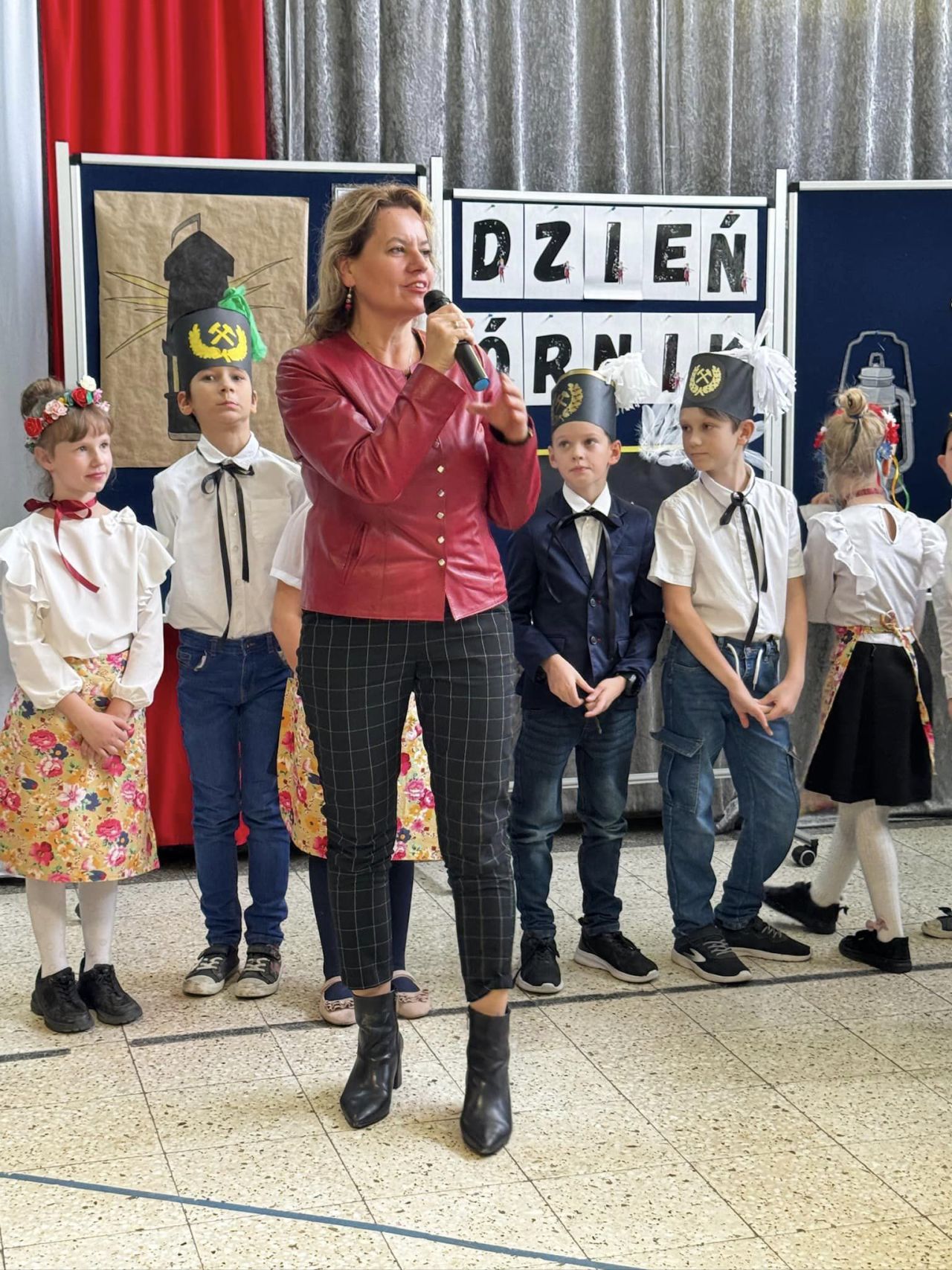 W „Czwórce” 1 grudnia odbyła się uroczysta akademia z okazji święta górników. Licznie zgromadzonych gości, którzy przybyli w mundurach, przywitała dyrektor SP 4 Karolina Kozioł-Mospinek, podkreślając, że bardzo ważne jest, aby w czasach, w których idziemy w stronę ekologii, pamiętać o tym, skąd się wywodzimy i jakie jest nasze dziedzictwo. – Aby budować przyszłość, rozwijać się, musimy pamiętać o naszych przodkach i ich ciężkiej, bardzo ryzykownej i trudnej pracy, właśnie tutaj, na Śląsku – powiedziała.