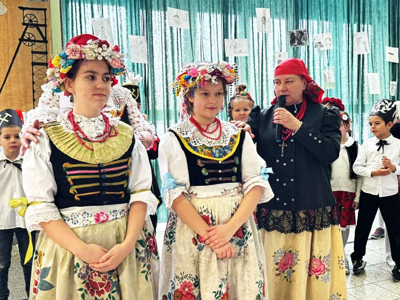 Kolorowe wianki z kwiatów i korali zdobiły głowy dziewczynek, a wiele z nich robiono już wcześniej w domach z rodzicami – przygotowania do wydarzenia zaangażowały całą szkolną społeczność. Chłopcy byli ubrani w eleganckie, białe koszule, a pod szyją mieli zawiązane zamszowe wstążki. Największe wrażenie robiły czapki górnicze, niektóre robione własnoręcznie przez uczniów. Podczas wydarzenia gości oprowadzali także uczniowie w strojach regionalnych, nad których przygotowaniem zawsze czuwa Tomasz Wrona – specjalista od strojów śląskich, historyk, regionalista, opiekun zespołu Karolinki.