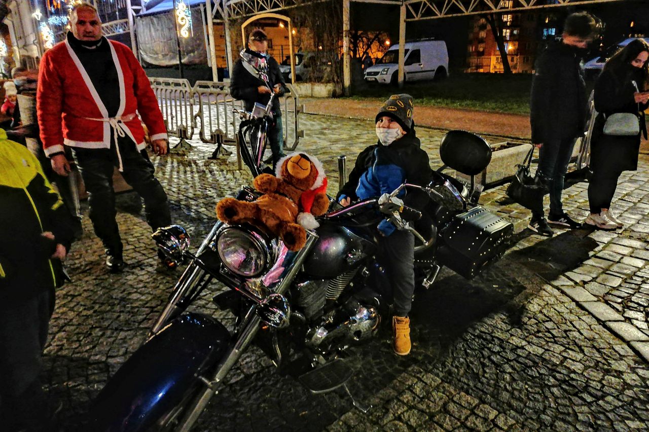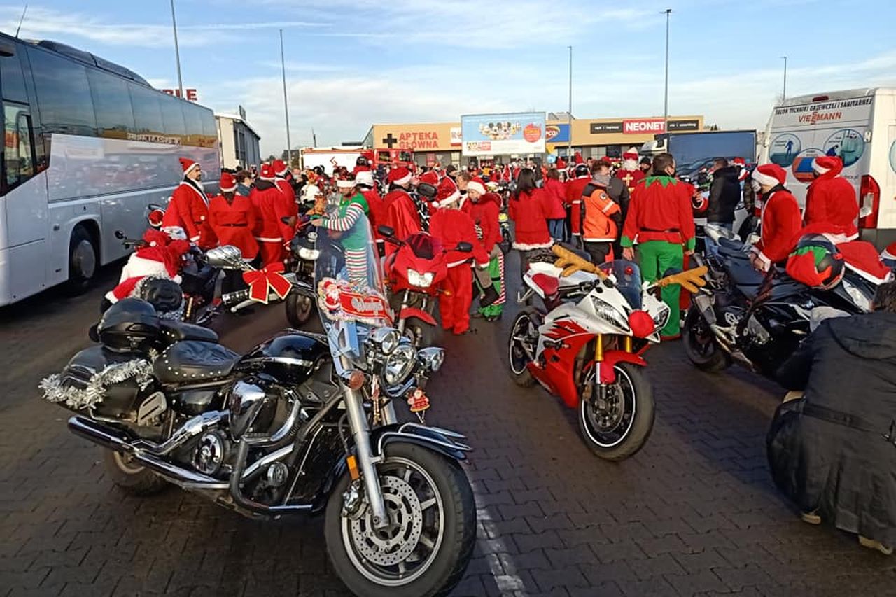 Natomiast niedziela 6 grudnia należała już do motomikołajów. Tym razem spod marketów przy ul. Moniuszki i Mikołowskiej wyruszyły dwie kawalkady. O godzinie 10.00 widowiskowo wyjechali motomikołaje z grupy Motocyklowe Mysłowice, a o 13.00 Motocyklowi Dawcy Szczęścia. Choć w tym roku osobno, to w jednym celu: dać radość dzieciom z placówek opiekuńczych.