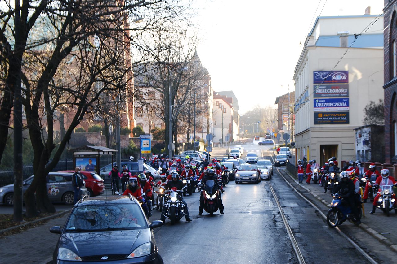 W ostatni weekend orszaki św. mikołaja można było zobaczyć niemal w każdej części Mysłowic. W sobotę i niedzielę trzy kolorowe korowody mikołajów wraz z elfami i śnieżynkami ruszyły w miasto na motocyklach, quadach, samochodach czy w pięknie przyozdobionych saniach. Wszystko po to, by odwiedzić najmłodszych mysłowiczan i rozdać im prezenty.