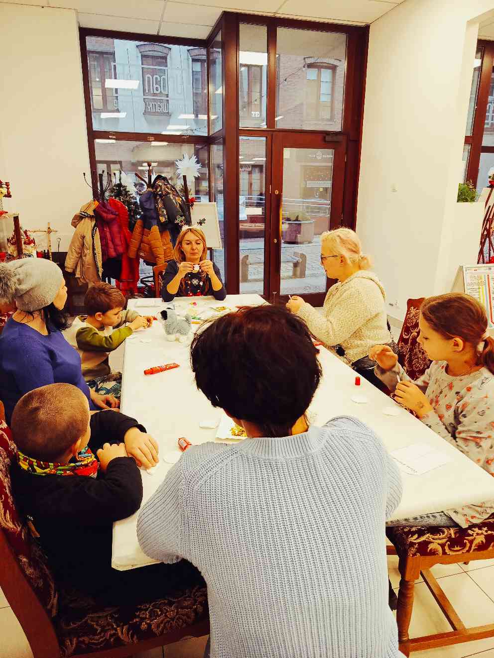 Uczestnicy przygotowywali świąteczne ozdoby, a organizator zapewnił poczęstunek. Spotkanie było jednym z działań wspierających rozwój i integrację najmłodszych objętych projektem.