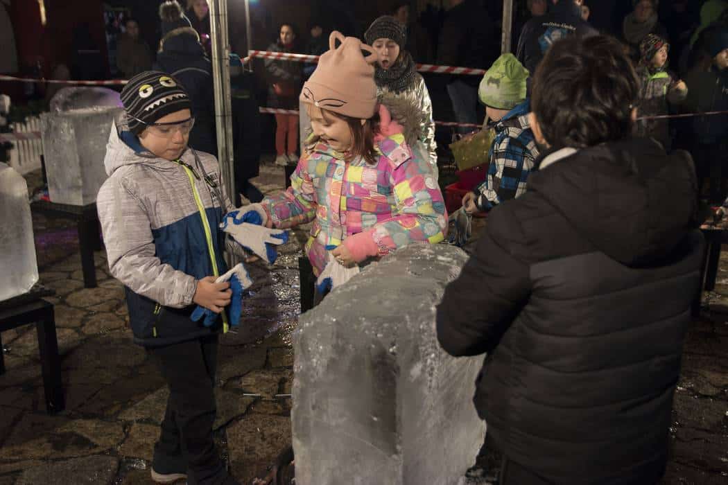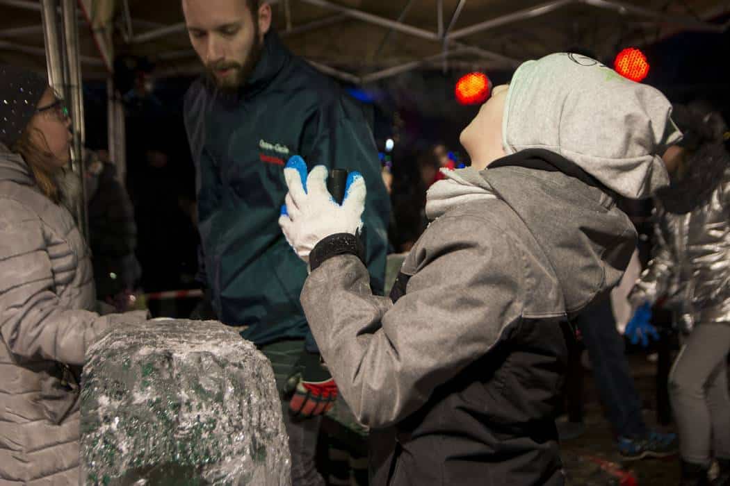 Organizatorzy zadbali, by jarmark był ciekawy zarówno dla dorosłych, którzy mogli zaopatrzyć się na święta i napić się grzanego wina oraz dla dzieci, z myślą o których przygotowano liczne zabawy i występy artystyczne. Ogromną frajdę najmłodszym gościom jarmarku sprawiła możliwość rzeźbienia w lodzie. Wyposażeni w niezbędne dłuta i okulary ochronne, najmłodsi próbowali swoich rzeźbiarskich sił.