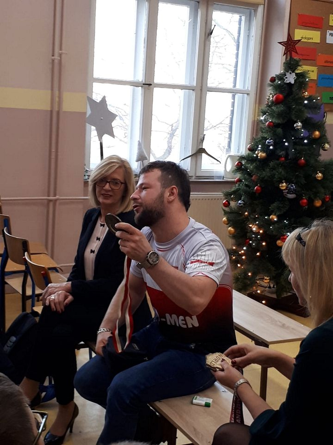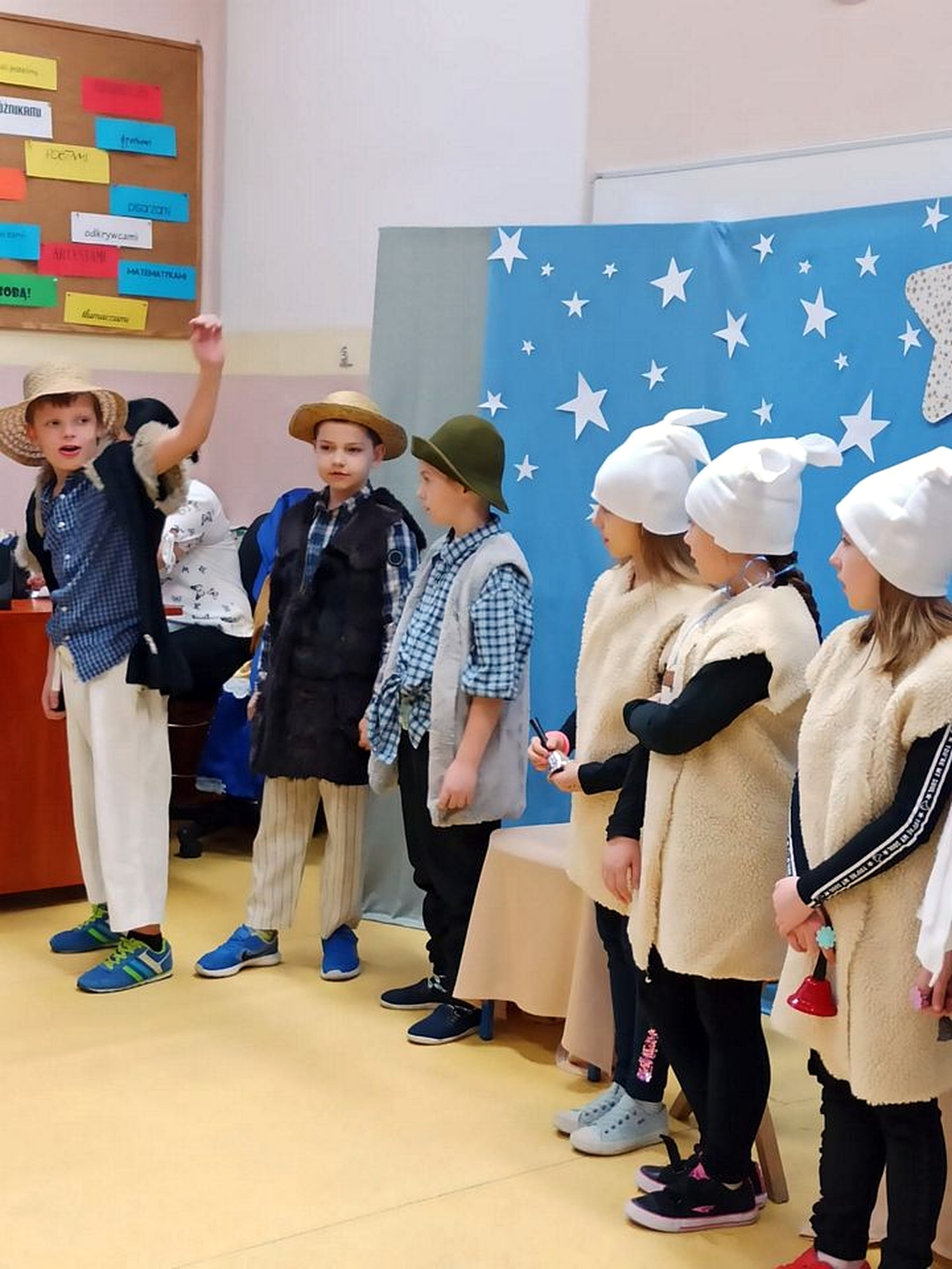 Drugoklasiści zawiesili sobie poprzeczkę bardzo wysoko i wszystko było na szóstkę. Gościem specjalnym jasełek był absolwent szkoły sportowej, mistrz świata 2019 w armwrestlingu, Radek Kwietniewski. Opowiedział on uczniom klas szóstych, jak zostaje się mistrzem, pokazał najważniejsze medale, które zdobył i udzielał odpowiedzi na pytania postawione przez młodych sportowców.