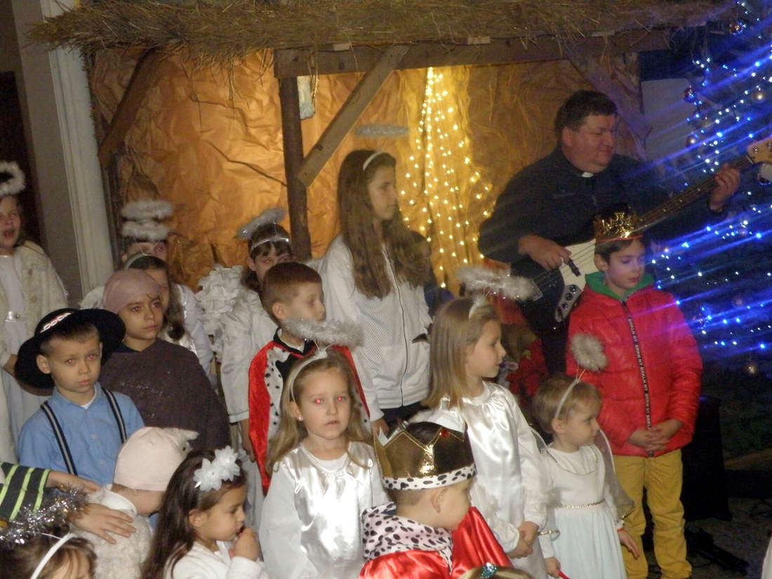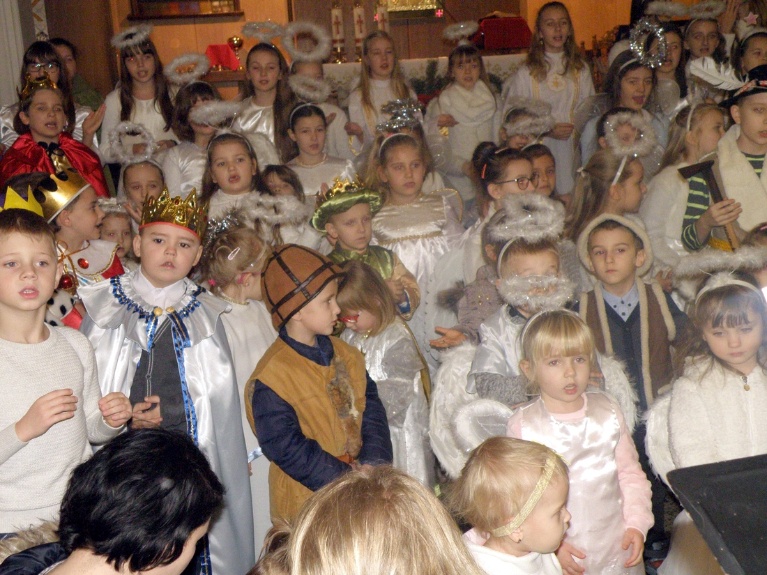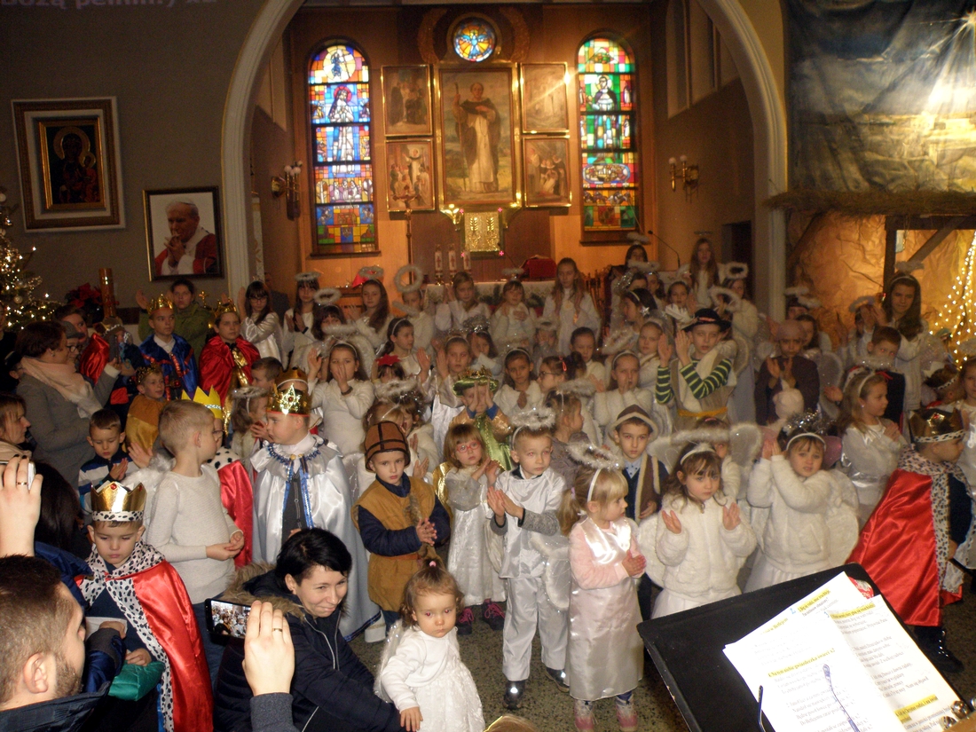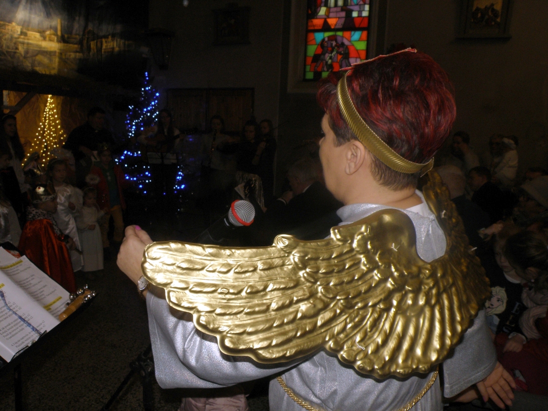 Tego dnia morgowska świątynia była jednym wielkim chórem. Dzieci tradycyjnie już nie tylko przygotowały kolędy, ale też piękne przebrania. Aniołki, królowie, pastuszkowie, Józefowie i Maryje kolędowali całym sercem przy żłóbku pod kierunkiem „naczelnego anioła”, czyli pani Aleksandry. Dziecięcemu chórkowi akompaniował zespół muzyczny stworzony z umuzykalnionych parafian i wspierany przez proboszcza, ks. Mirosława Dubiela grającego na gitarze.