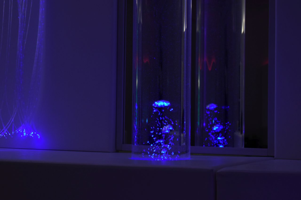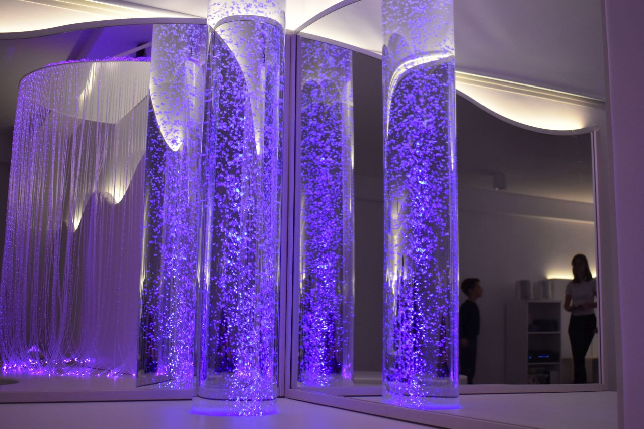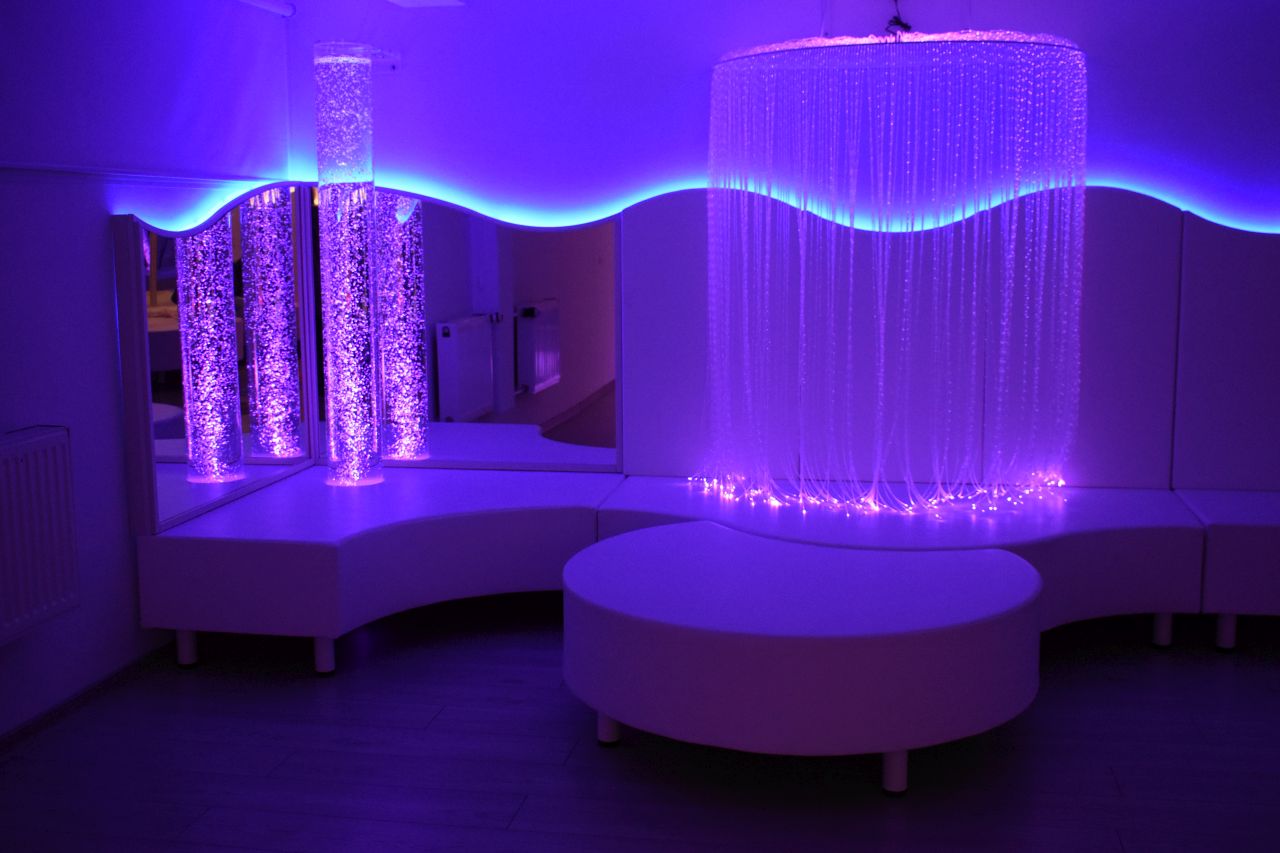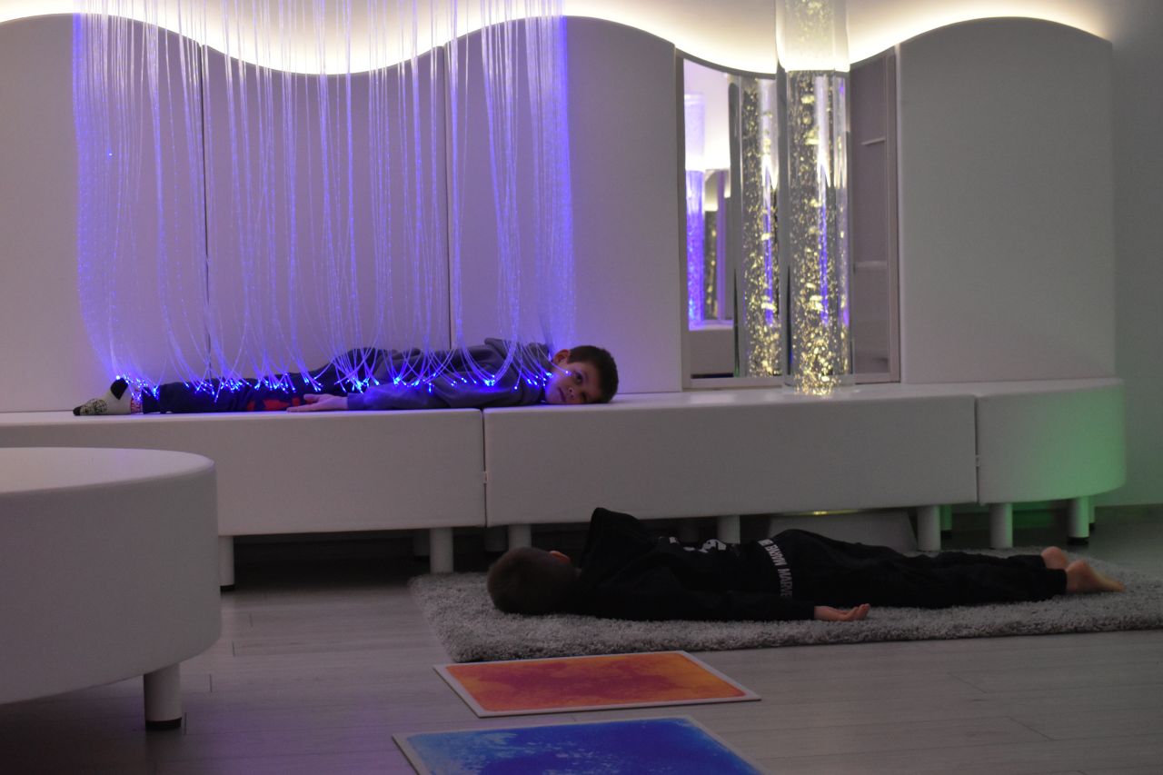 – Takim naszym głównym pomysłem było łóżko wodne, które dostarcza nam dużo bodźców proprioceptywnych, mamy dużo oświetlenia, które daje nam dużo wrażeń wzrokowych i mamy także aromaterapię, gdzie pobudzamy zmysł węchu – wymienia Paulina Chmielewska, fizjoterapeutka, terapeutka integracji sensorycznej i nauczycielka w SP 13.